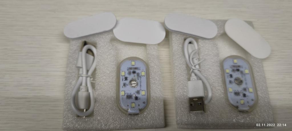 Заказ до СПб доставили за месяц с частичным отслеживанием перемещения товара. Товар был хорошо упакован и пришёл без повреждений. В упаковке был полный комплект: лампа подсветки; кабель для зарядки; полоски для крепления. После подзарядки лампы проверили - работает отлично, светит довольно ярко, включается от нажатия на корпус лампы. Единственное, что цветовое свечение почти не заметно; но для работы лампы это не принципиально. Установка простая и удобная: полоски крепятся на клеевой слой к корпусу и к месту установки, а между собой на разъёмное соединение. Лампа понравилась - скорей всего, закажу ещё дополнительно для подсветки различных мест в автомобиле. Товар и продавца рекомендую.