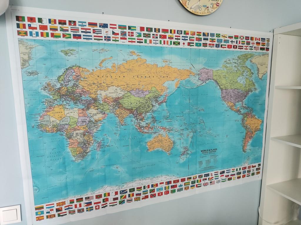 Все в точности как в описании. Материал приятный. Не помята. Лёгкая. Быстро закрепили. Цвета яркие. Ребенок очень доволен. Есть маленькие неточности во флагах - это если вдруг у кого-то такой же строгий географ, как у меня. С моей стороны нареканий нет. Очень рекомендую!