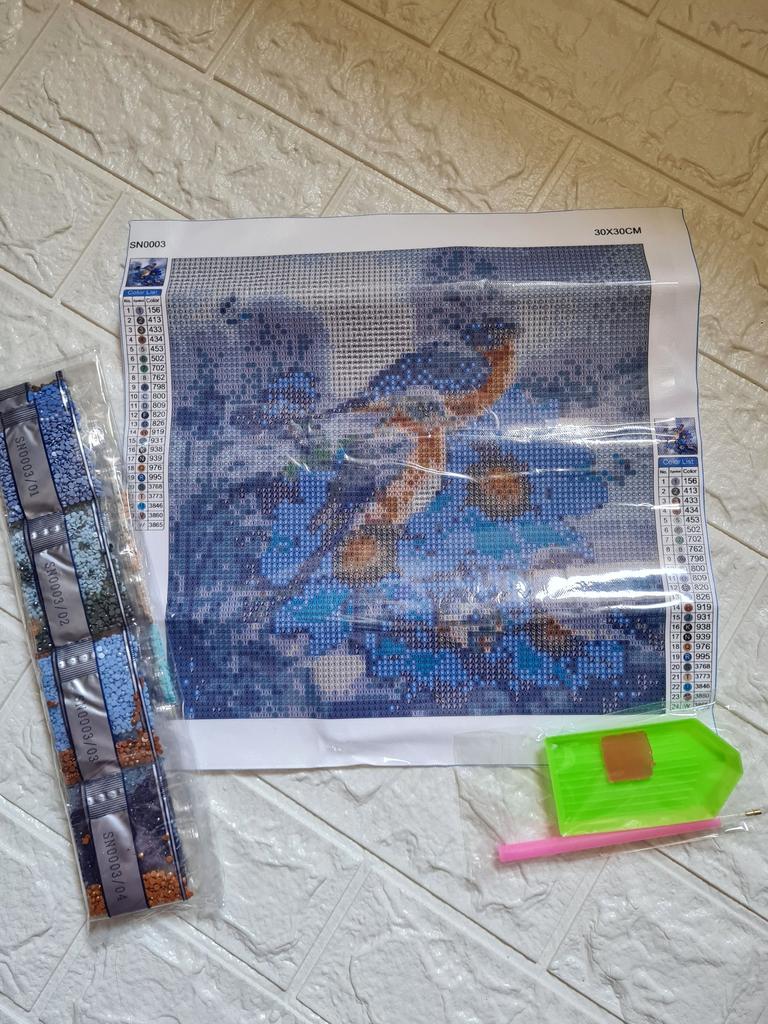 Алмазная живопись/мозаика/картина по номерам 🖼 с изображением снегирей и цветов Очень красивая. Размер полотна: 30*30 см. Выкладка полная. В комплекте: само полотно, стразы, лоток для них, стилус и сухой клей. Товар рекомендую однозначно, очень увлекательное занятие👍👍👍💯💯💯 Доставка ✈️ до Минска заняла ровно месяц. Спасибо продавцу и джуму 😘 Благодарю вас за ваши лайки,❤️ комментарии 💬 и подписку ✅🤗