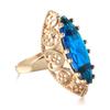 На фото смотрится как то попроще. Ожидала худшего. Но колечко превзошло все ожидания. Смотрится красиво. Металл от золотого не отличается. Работа выполнена качественно. Цеплять за вещи не будет. Настолько милое и красивое! Подходит мне и не указательный и средний палец. Колечко массивное,камешекн насыщенного синего цвета,как у сапфира. На свету играет. Очень мне понравился. Надела и ходила целый вечер просто так,снимать не хотелось. Я в него влюбилась. Закажу ещё и серьги, уже нашла такого фасона. Будет комплект. К приобретению рекомендую и благодарю!!!Все колечки из Джума! Эти все класс и работа и камни!