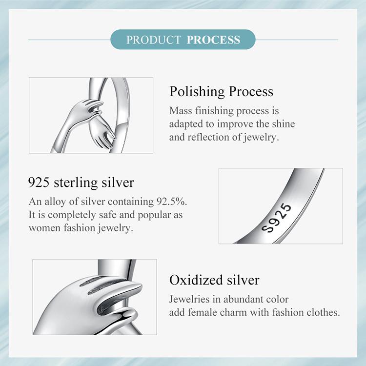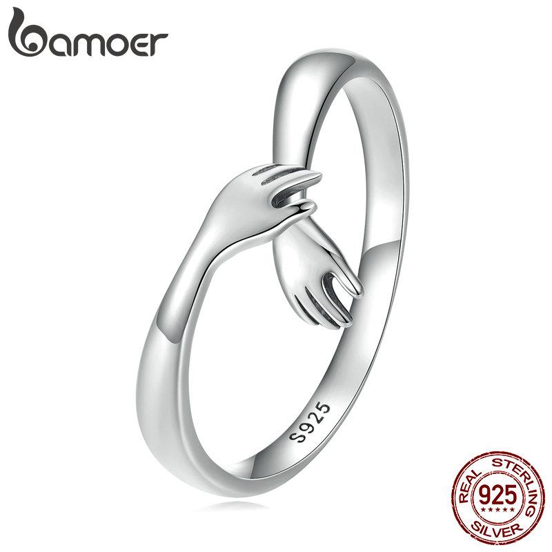 BAMOER романтические кольца на палец с открытыми руками для женщин, стерлинговое серебро 925 пробы, европейское простое регулируемое кольцо-защитник для девочек, ювелирное изделие, подарок