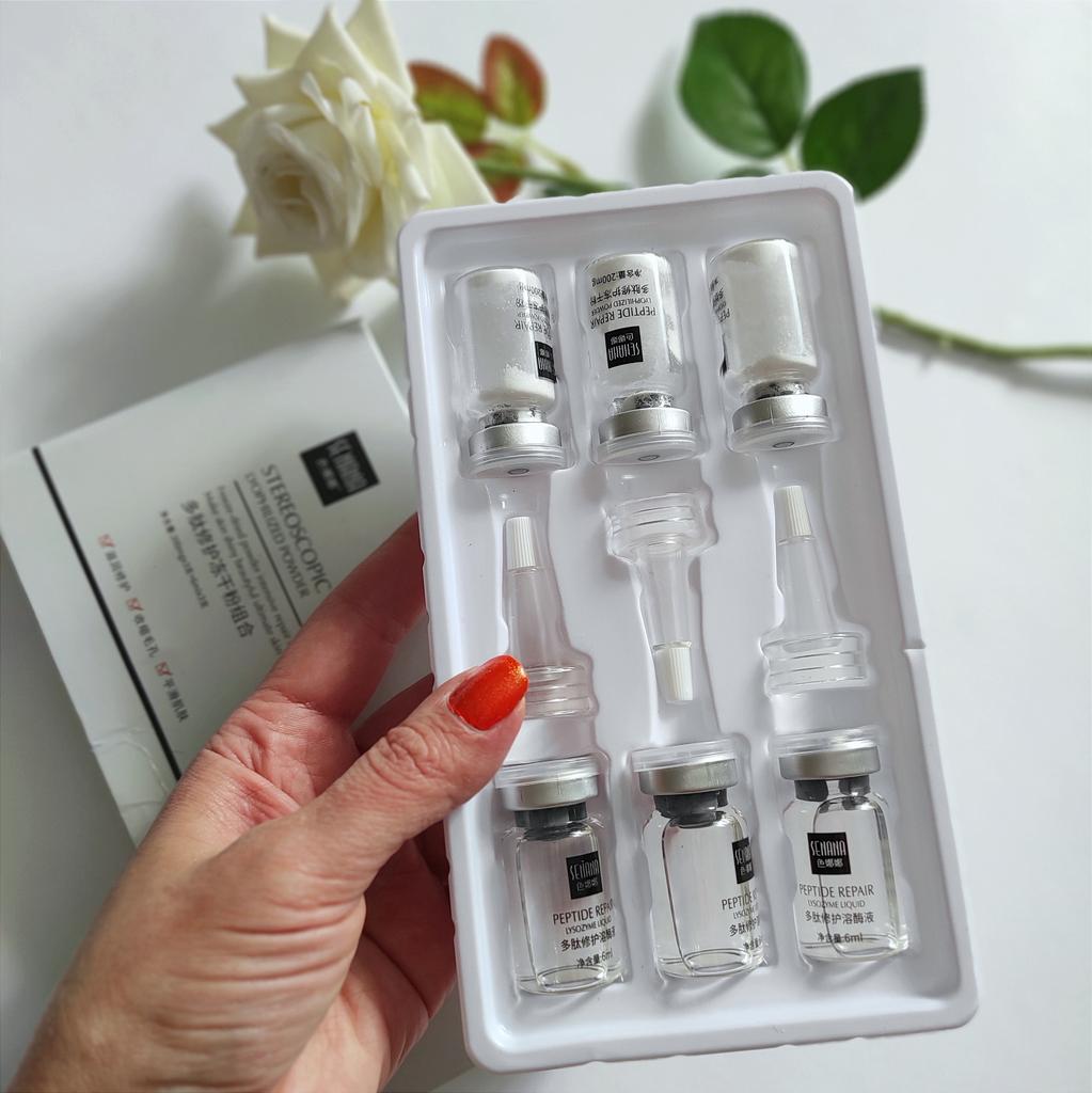Всем привет ❣ у меня сегодня шикарная сыворотка для лица с пробиотиками и пептидами, которая действительно может конкурировать с самыми раскрученными косметическими средствами. Сыворотку беру второй раз, люблю её и с удовольствием расскажу. Комбинация лиофилизированной пудры SEHANA Peptide Repair содержит богатые олигопептидные ингредиенты, которые могут смягчать кожу, улучшать ее тон, увлажнять, сужать поры, разглаживать кожу и сохранять влагу надолго, бороться с первыми признаками старения. Сыворотка состоит из 6 баночек, в 3 из которых порошок и в 3 баночках жидкость. В каждой находятся компоненты, которые вместе работают отлично, но не могут храниться вместе. Для того, что бы получить сыворотку, нужно смешать содержимое двух баночек-жидкость и порошок, затем после применения сразу убрать в холодильник. Срок хранения готовой сыворотки несколько дней в тёмном месте, при температуре не выше +5, потому готовую порцию нужно как можно быстрее использовать, наносим на очищенную кожу после умывания утром и вечером (если осталась готовая сыворотка, а срок годности истекает, из неё можно сделать маску нанеся на ткань приложить к лицу на 15 минут, не смывать) ❣❣❣❣❣ Важно, на коже не должно быть никаких средств так как тяжёлые металлы, спирт, щелочная, или кислотная среда разрушают компоненты сыворотки, результата от применения не будет ❣ Состав: Порошок+Жидкость (6мг): пропиленгликоль, глицерин, глицерилглюкозид, феноксиэтанол, глицерилкаприлат, каприловая кислота, аллантоин, бензиловый эфир, динатрий EDTA, ароматизаторы, дрожжевые пептиды. Сывороткой пользуюсь с удовольствием, очень удобно, что предусмотрен колпачок-пипетка, с ним наносить гораздо удобнее. Сыворотка имеет консистенцию водички, впитывается моментально без финиша, с другой косметикой не конфликтует, я даю сыворотка впитаться около 15-20 минут, затем наношу крем, если ждать времени нет, можно крем, или макияж нанести сразу. Очень рекомендую, у меня только хорошие впечатления, не забудьте проверить на аллергическую реакцию. #likaste