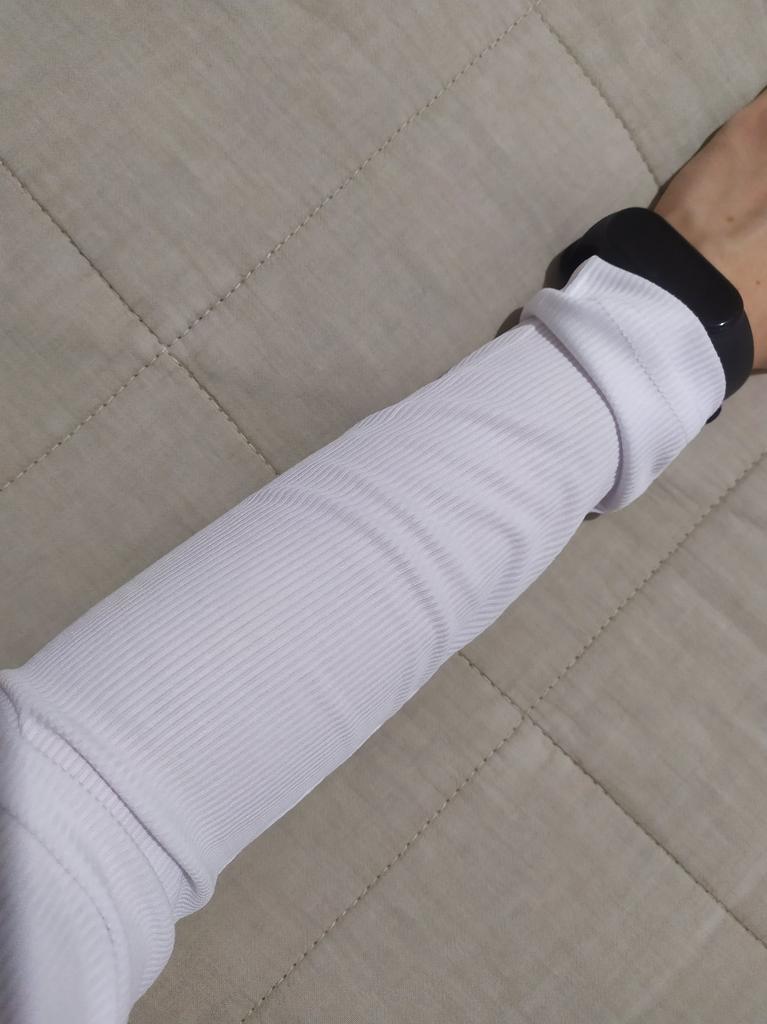 Заказала Белый и мокко. Белый - холодно белого цвета. Как на спортивной одежде. Материал полностью искусственный. Как для спортивной одежды. Приятный к телу, тонкий материал. Не просвечивает на телесном белье. Ткань блестит. Ношу S. Подошел размер M.