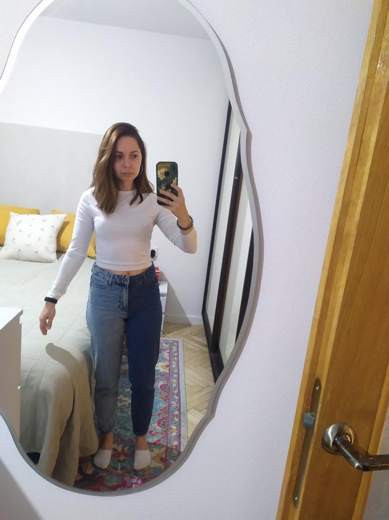 Боялась брать, но в итоге очень понравилась! Немного криво сшито местами но почти не видно и учитывая цену вообще всё прекрасно. Хорошо ощущается на теле, красиво выглядит, как на картинке. Если будете вы, как и я, по размеру между двумя, то берите тот что больше!
