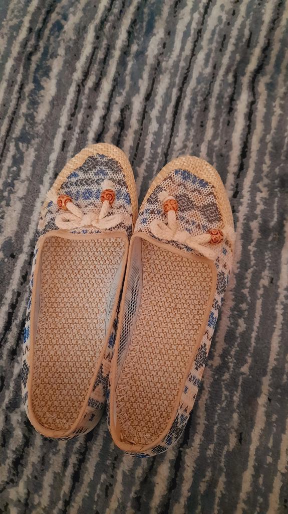 Красивые летние тапки-туфли,нарядные,украшены бантом из х/б шнурка с деревянными бусинами,верх-двойная сетка,носок оформлен плетением из искусственной рогожки,стелька мягкая не съёмная, подошва мягкая в меру упругая резина,рефлёная, на 24,5 заказала 39,сели хорошо комфортно,на полноту до 23см. Мне понравились, очень мягкие,лёгкие и удобные, могу рекомендовать.