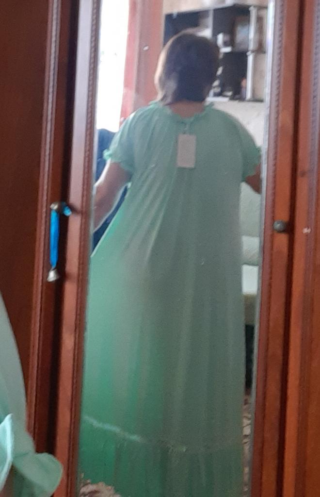 Отличная ночнушка, ткань хоть и синтетика, но очень мягкая и нежная, размер немного великоват. Брала по ОГ на 120, можно было бы заказать на размер поменьше. Очень длинная, на мой рост 160см почти до пят. Хотела сначала обрезать, но очень уж хорошо обработаны швы, побоялась испортить, ничего менять не буду.