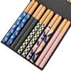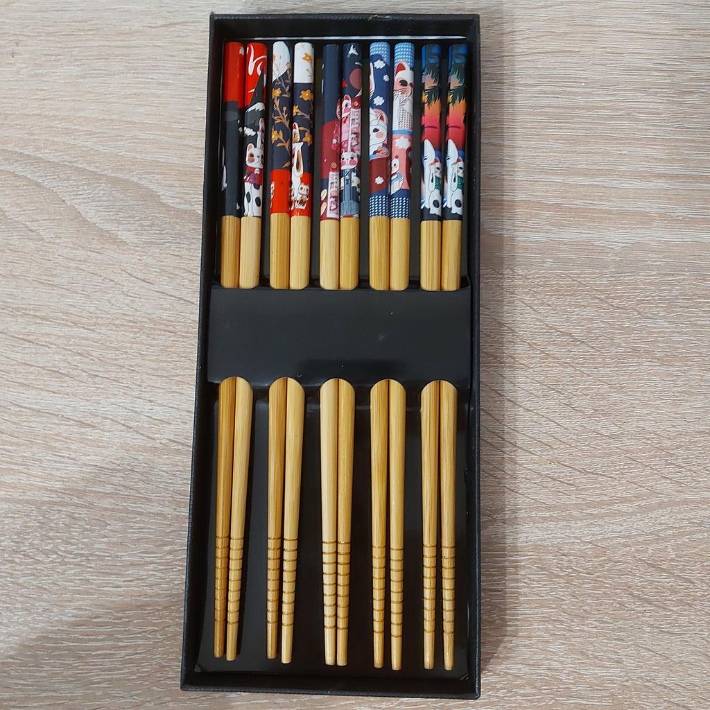 Многоразовый набор из 5 пар бамбуковых палочек ручной работы в японском стиле из натурального дерева, палочки для еды, суши, еды, кошек, цветов, разноцветные деревянные палочки для еды