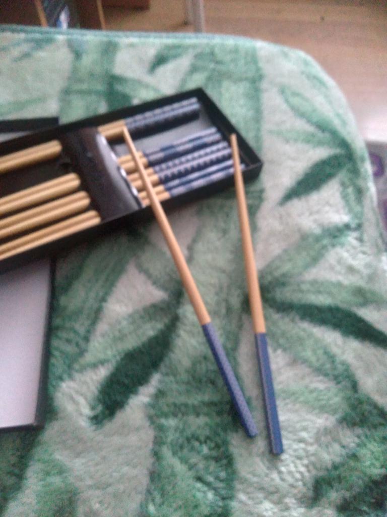 Ну, что можно сказать про палочки. Всегда пользовались деревянными, увидела что есть другие решила заказать. Хорошо упакованы. Когда начинаешь пользоваться, сперва неудобно некоторая еда плохо береться начинает скользить и не хватается. нечего потом привыкла. А так прикольно.