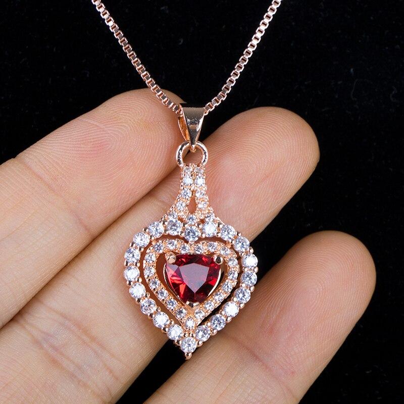 BELLA BOX Горячие продажи в форме сердца, рубиновые драгоценные камни, цвет розового золота, 5А, циркон, цепочка на ключицу, простое хрустальное ожерелье для женщин, свадебные украшения, оптовая продажа