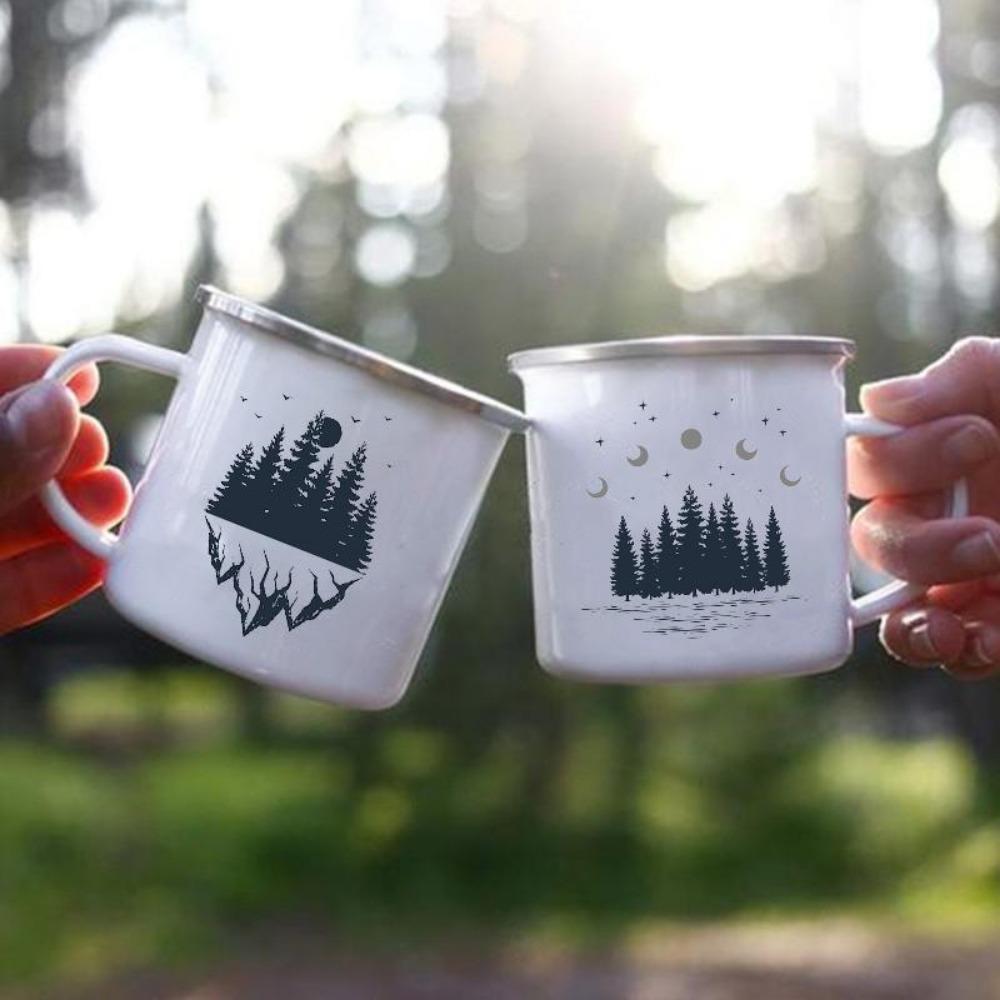 Ночной лес, горы, принт, эмаль, креативные чашки для кофе, чая, воды, молока, кружки для кемпинга, посуда для напитков, кружка для отпуска, походов, подарки