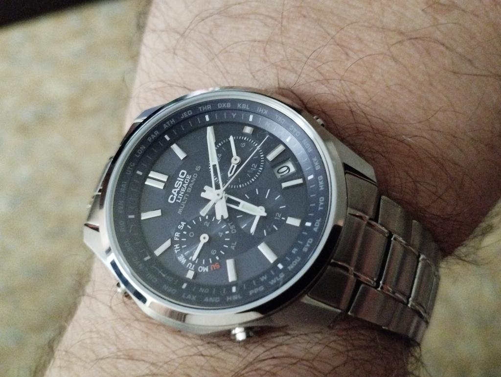 Это Сейко Астрон, только Касио. Большой функционал, металл, минеральное стекло,время выставляю со смартфона программой, имитирующей радиосигнал. Причем сразу выставляется и время и год и день недели и число. Чтобы часы перешли в режим приёма радиосигнала, выставляйте регион Япония на часах. И цена демократичная. Касио Океанус с радио синхронизацией в 5 раз дороже.