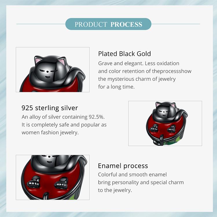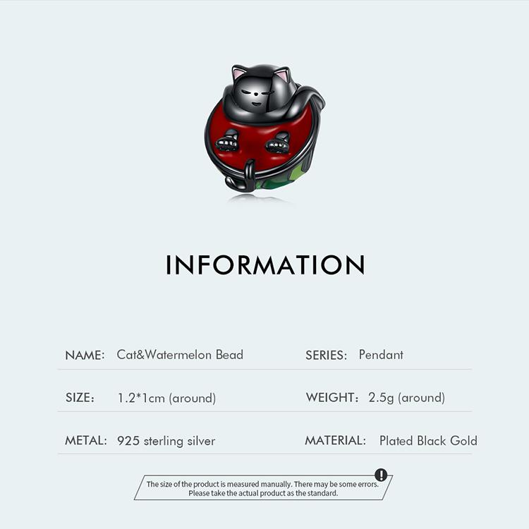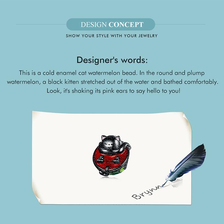 WOSTU Аутентичные бусины-подвески в виде кота и арбуза из стерлингового серебра 925 пробы, подходят для женских браслетов и браслетов, ювелирные украшения