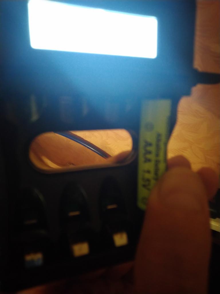 Вроде заряжает. Правда не понятно как, без батареек горит зеленая лампочка, вставляеш батарейку горит сначала ярко красным, потом тускло. 12 час простояла зарядка, цвет не изменился. Замерил напряжение на батарейках 1, 42 вольта