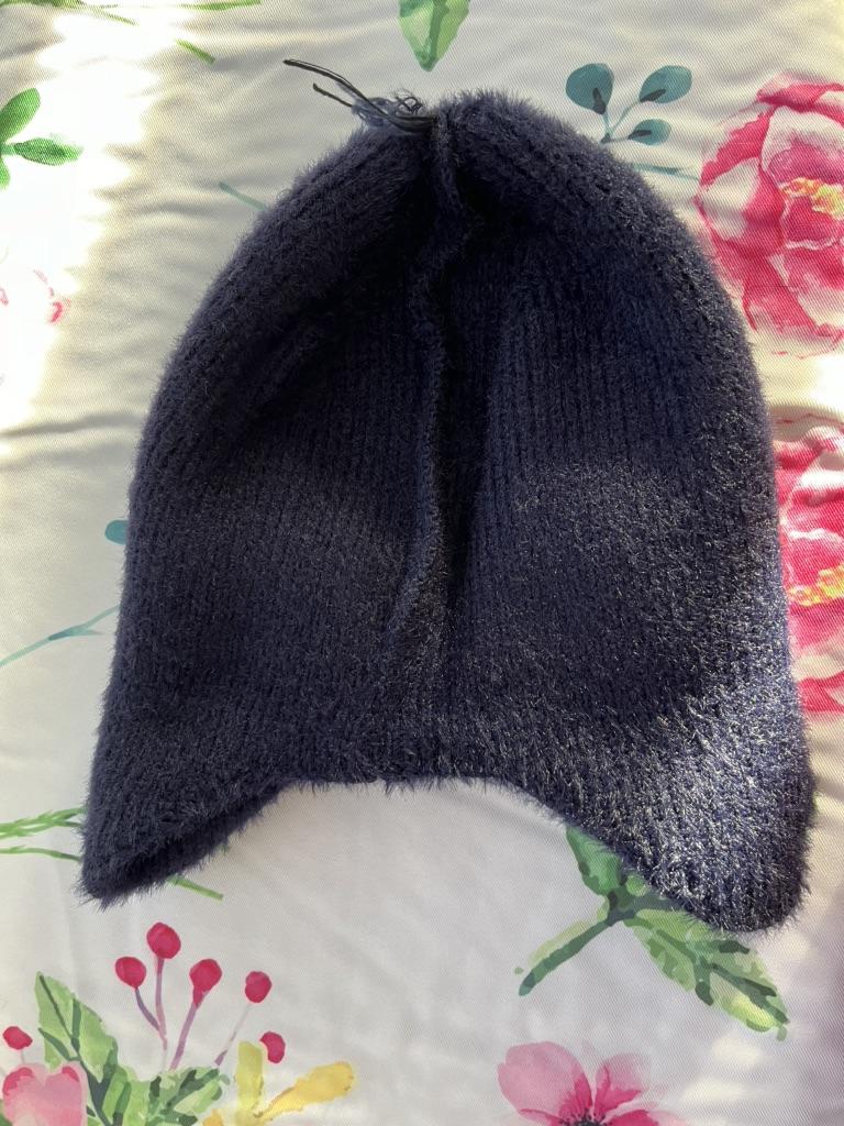 Шапка с ушками в голубом цвете заказана мной из-за фасона (прикрывает уши). Из "+" для меня - это цвет, сочный голубой и фасон, прикрывающий уши. Многие в отзывах пишут, что шапка маломерит, мне же досталась по объёму большая для моего 57го размера, она больше подойдёт на размер 58-59, а то и на 60-й, вязка мягкая и рыхловатая, из-за неё шапка хорошо растягивается. Хотелось вязку поплотнее. Посадка глубокая, вверху остается небольшой "наплыв", "ушки" на мне заканчиваются ниже уровня середины щёк. Сидит на мне не айс. После стирки, думаю, вряд ли подсядет, станет меньше, т.к. в составе совсем нет шерсти, а лишь синтетический акрил, который имеет тенденцию вытягиваться в процессе эксплуатации вещей. По сезону - осень и тёплая зима, из-за рыхлой вязки при ветре будет продуваться им. Вряд ли буду носить.