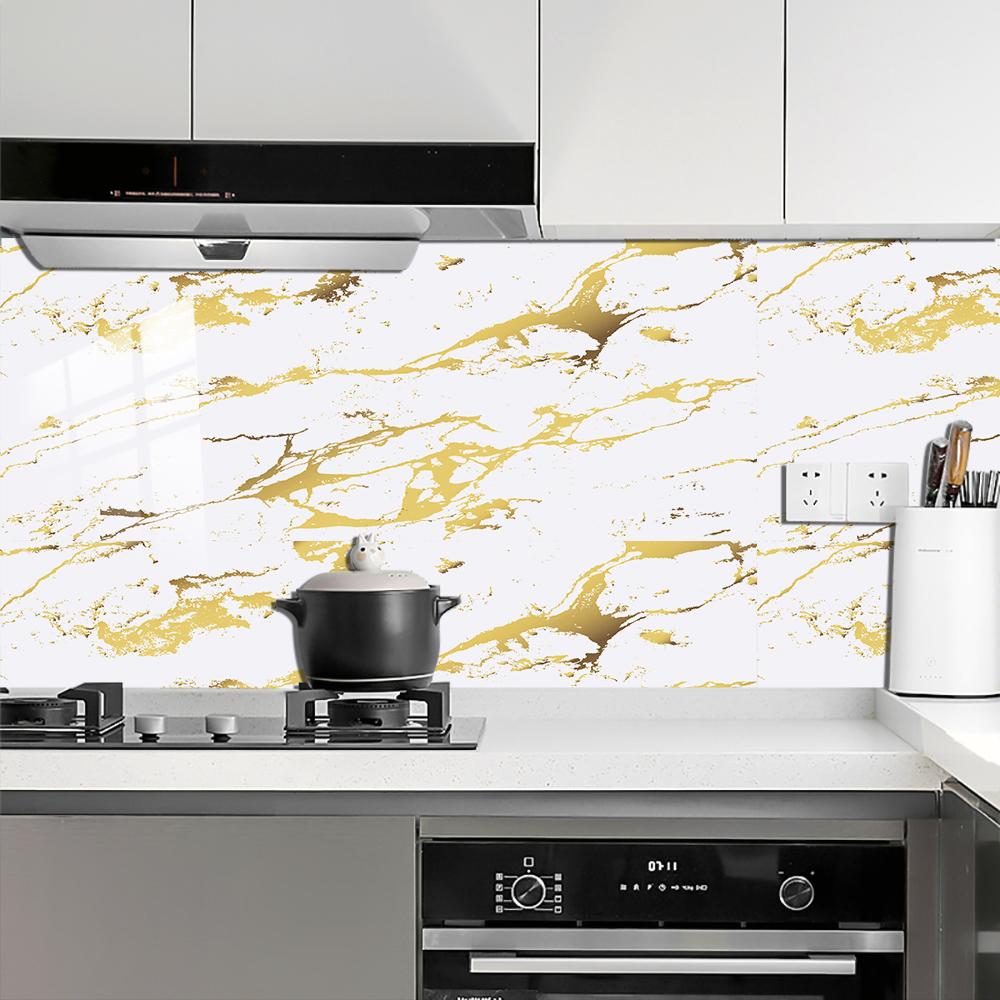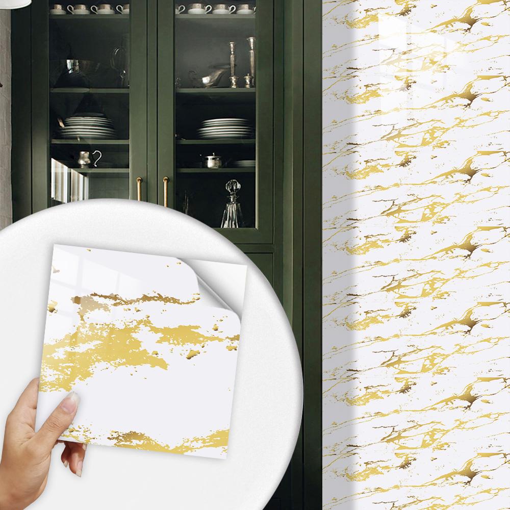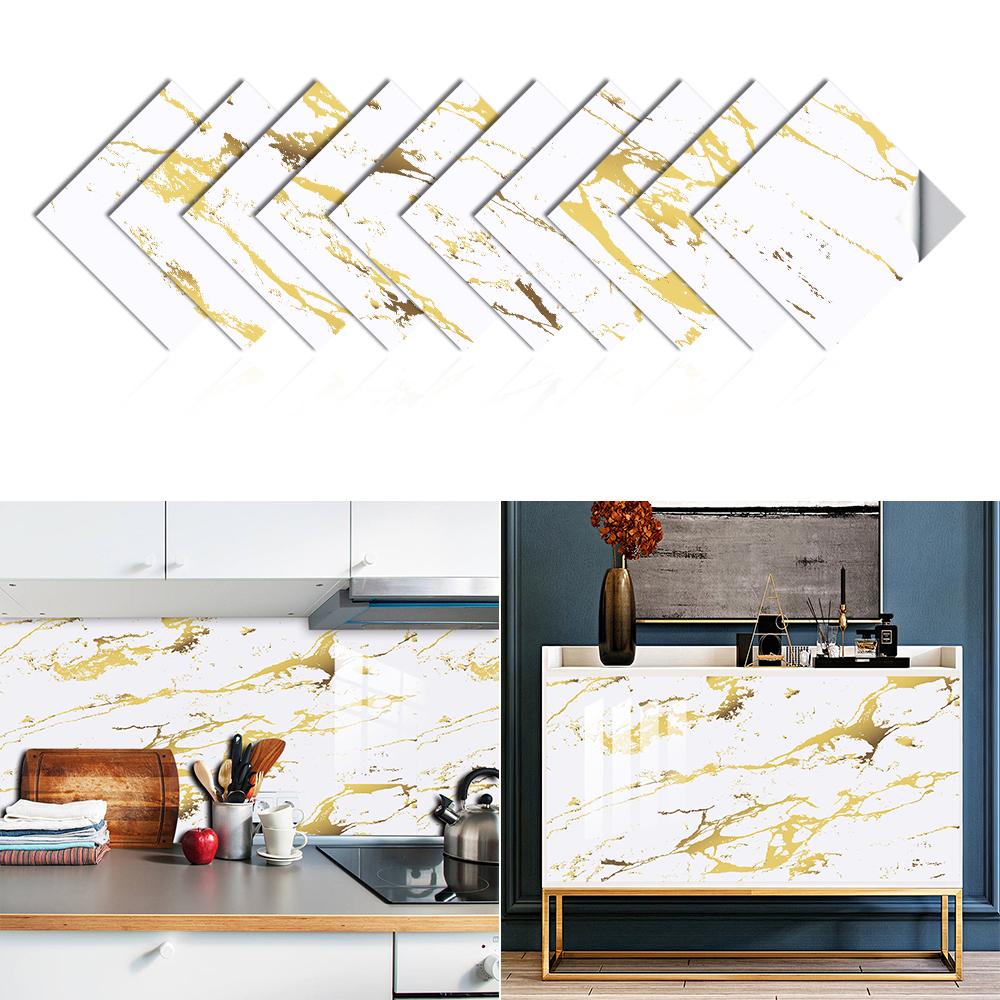 10 шт., белая и золотая наклейка на мраморную плитку, кухонный фартук, маслостойкая ванная комната, домашний декор, наклейки на стены, художественная роспись
