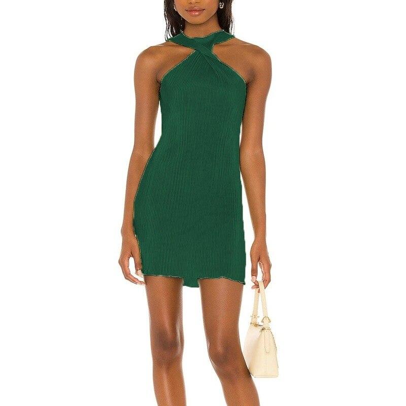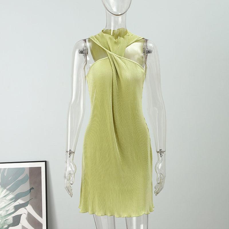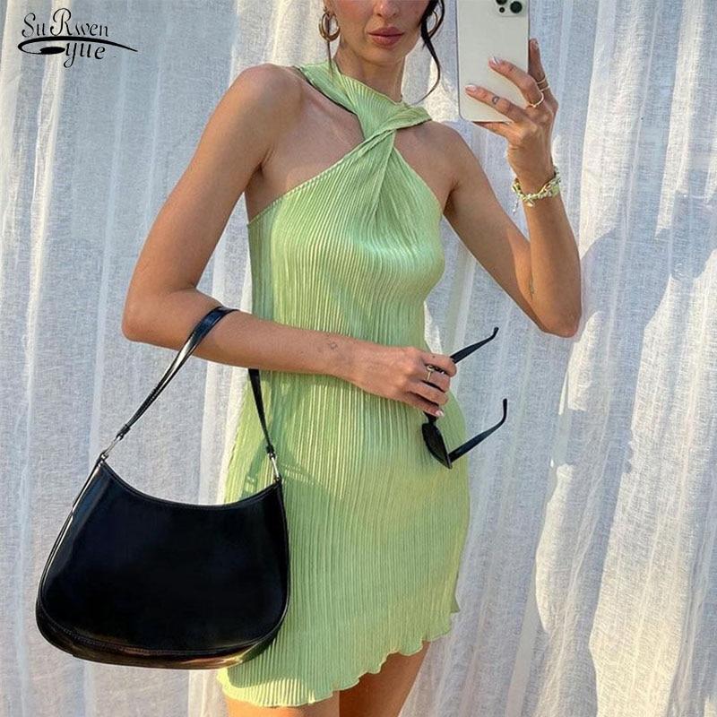 Сексуальное плиссированное мини-платье для женщин 2022, летняя уличная одежда без рукавов, Y2k, вечернее клубное платье, платья с круглым вырезом и открытыми плечами 21922