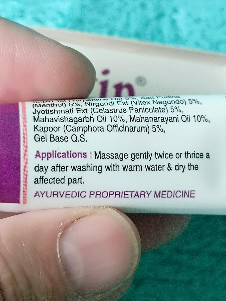Хороший крем, боль снимает через несколько минут после нанесения, из-за сильного запаха можно пользоваться только вечером, утром тщательно смыть. Я пользовалась подобным кремом (купила у нас в С-Петербурге в индийском магазине) - эффект действительно очень хороший!!!