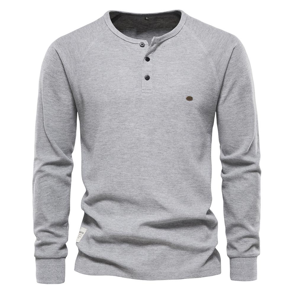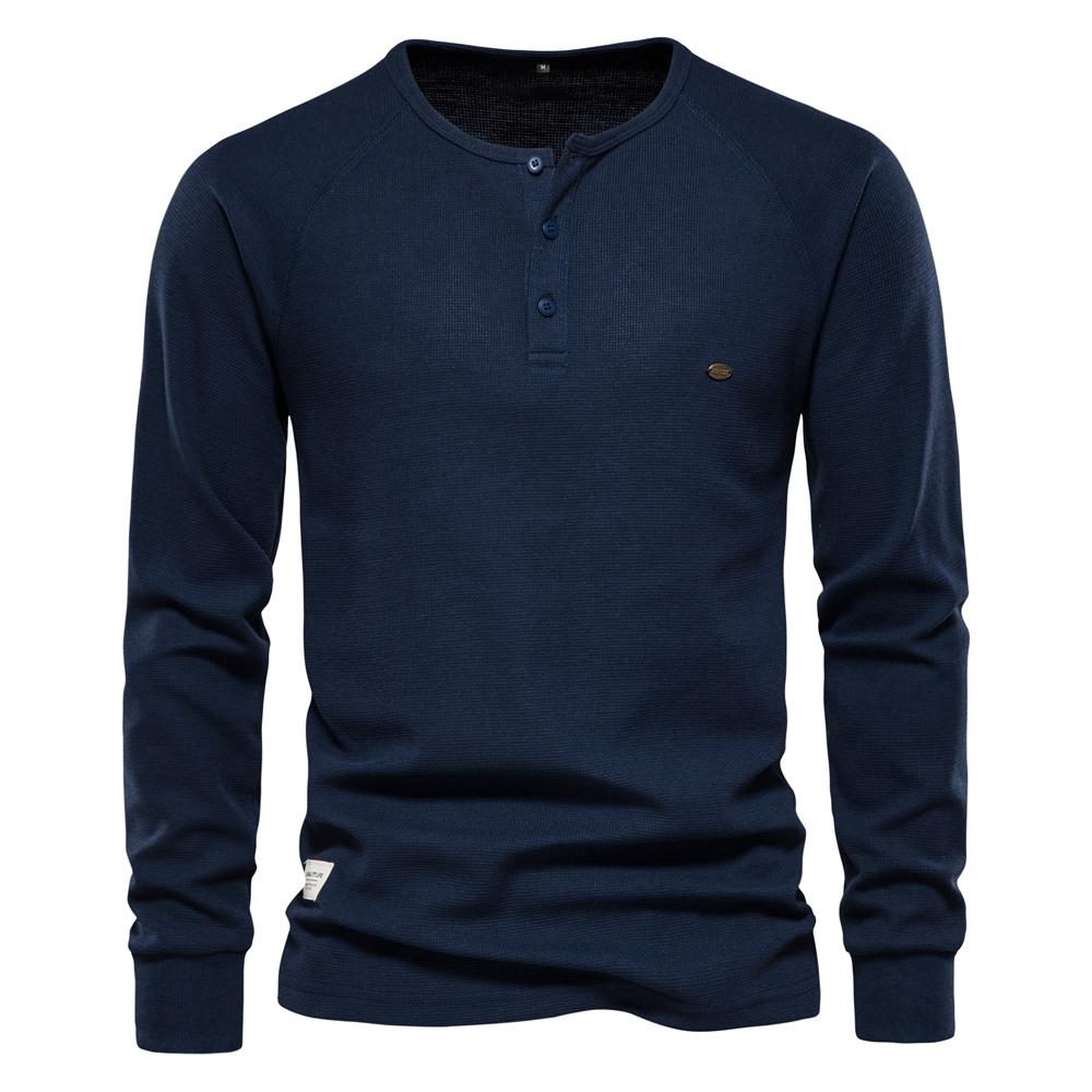 Мужская вафельная футболка AIOPESON, новинка 2022 года, осенняя футболка с воротником-хенли и длинными рукавами, простые дышащие мужские футболки, однотонные мужские топы