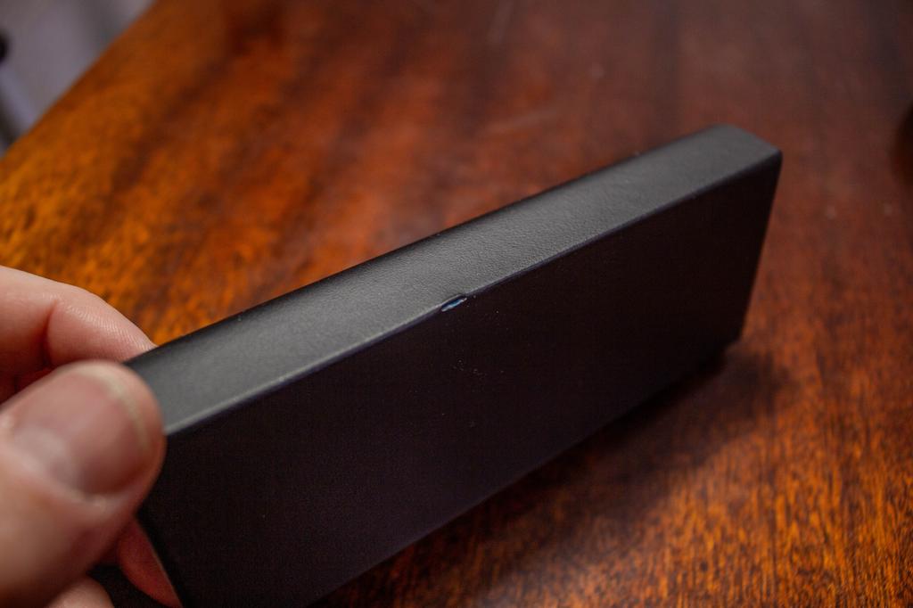 Футляр слегка поврежден. И это очень плохо, что это повреждение на месте изгиба, потому что продолжит рваться дальше вдоль по изгибу. Был упакован в пакет с одним слоем "пупырки", либо при транспортировке был поврежден, либо упаковали поврежденный, так или иначе, за это только три звезды.
