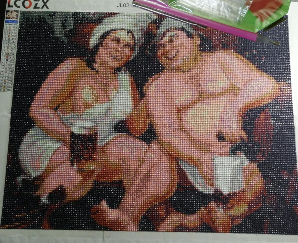 🤗🤗🤗ВСЕМ ПРИВЕТ. 🙌 🌿🍻Заказ шёл месяц и 20 дней в сборной посылке. 🌿В заказе Алмазная мозаика,,, Банька на двоих,, 👍 🍻Это мой повторный заказ для подружки, уж больно ей нравится эта картина. 👍👻 🍻Если хорошо приглядется, то на мой взгляд эти два голубка очень похожи на двух наших артистов Любовь Полищук и Евгения Леонова🙈😜👻. Возможно это только мне так кажется🦧🦧. 🍻Замечательная, позитивная картина, отлично украсит комнату отдыха в бане или сауне. 👍 🌿Картина яркая, в розовых тонах расспариных ТЕЛ. 😜👍 🍻Картина пришла намотана на стразы, заломов нет. 🌿Обозначения на самой картине пропечатаны чётко, хорошо читаемы. 🍻Липкий слой под прозрачной плёнкой, липнет хорошо. Стразы будут держаться на Ура. 👍 🌿В комплект входит: Сама картина Стразы Лоток для страз Стилус Сухой клей для стилуса. 🍻Покупкой давольна, всё очень ярко и красиво. 👍 🌿Продавца и товар рекомендую. 👍🙌 ВСЕМ ПРИЯТНЫХ И ХОРОШИХ ПОКУПОК. 👍👏🙌🤗. 🍻🌿🌿