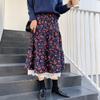 Новая японская женская юбка-миди Mori Girl с высокой талией, темно-синяя, коричневая юбка с цветочным принтом и кружевными оборками, винтажная элегантная вельветовая юбка
