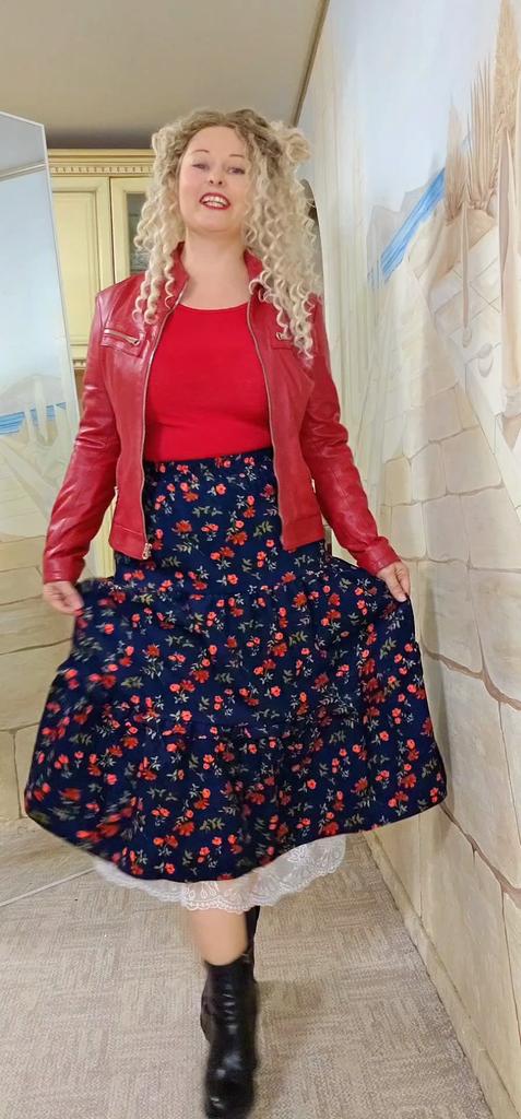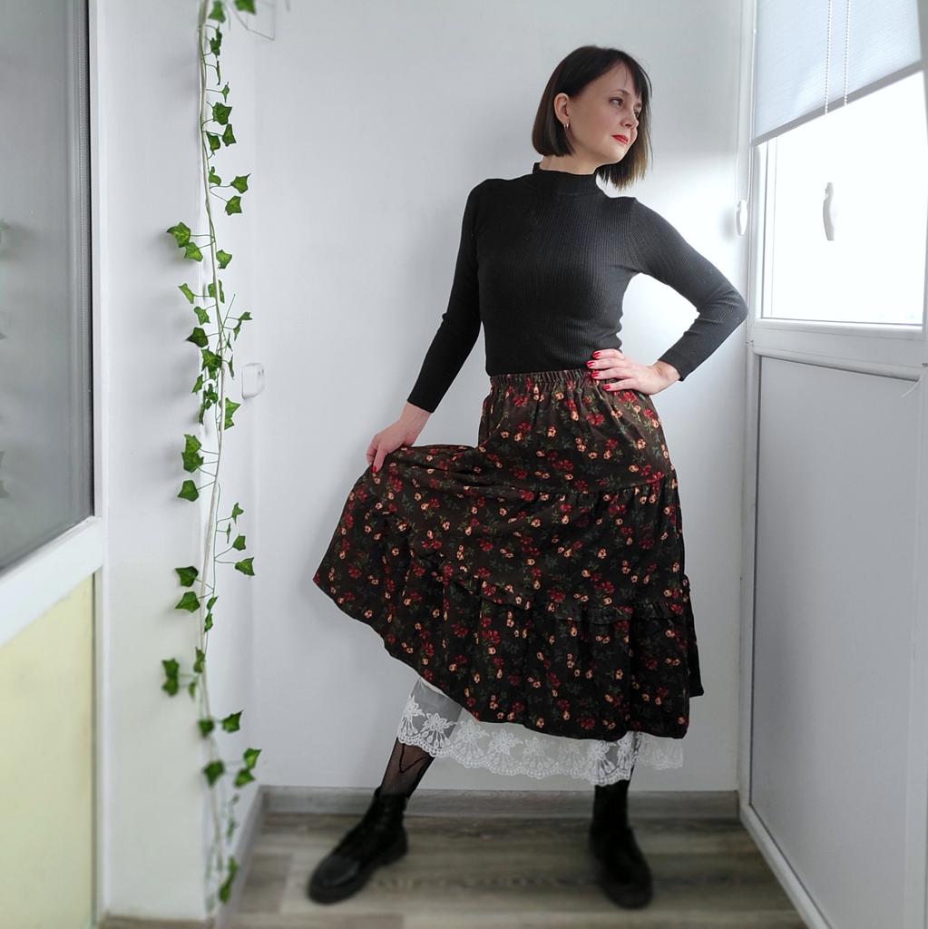 Юбка - прелесть♥️ Красивая и озорная)) Мягкий вельвет, приятный, а еще белый подъюбник с красивым кружевом по низу. Подъюбник и украшает, и придаёт по низу юбочке объёма. Цвет яркий, сначала смотря в зеркало издалека, я решила, что это юбка- вишенка. Но потом присмотрелась - это яркие красные цветочки, розочки. Мило, не передать. Очень красивая юбка! Можно носить круглый год, зимой с колготками и сапожками, а летом с футболкой)) Качество фабричное, все аккуратно. На параметры 82-102 сидит отлично! Параметрам продавца соответствует👍 Кто любит романтику, без такой юбочки не обойтись)) От души рекомендую 🧡