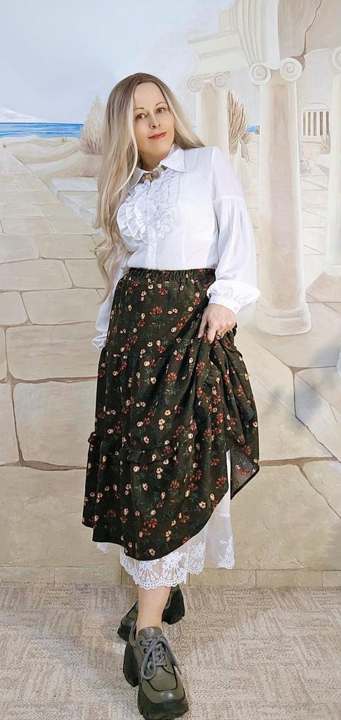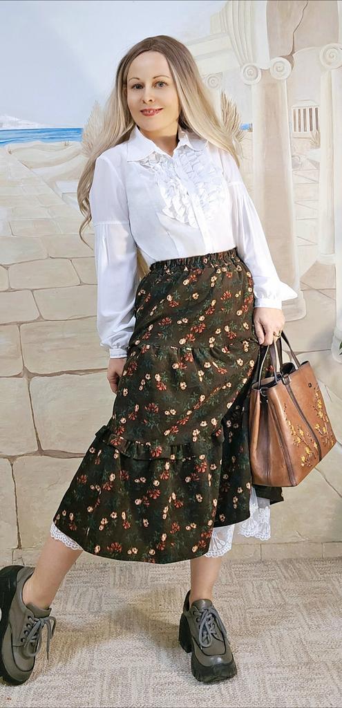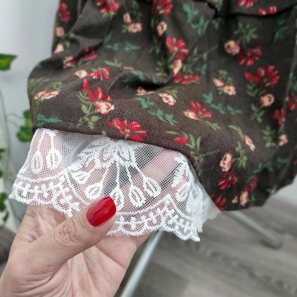 Новая японская женская юбка-миди Mori Girl с высокой талией, темно-синяя, коричневая юбка с цветочным принтом и кружевными оборками, винтажная элегантная вельветовая юбка — купить товар онлайн с бесплатной доставкой по всему миру!
