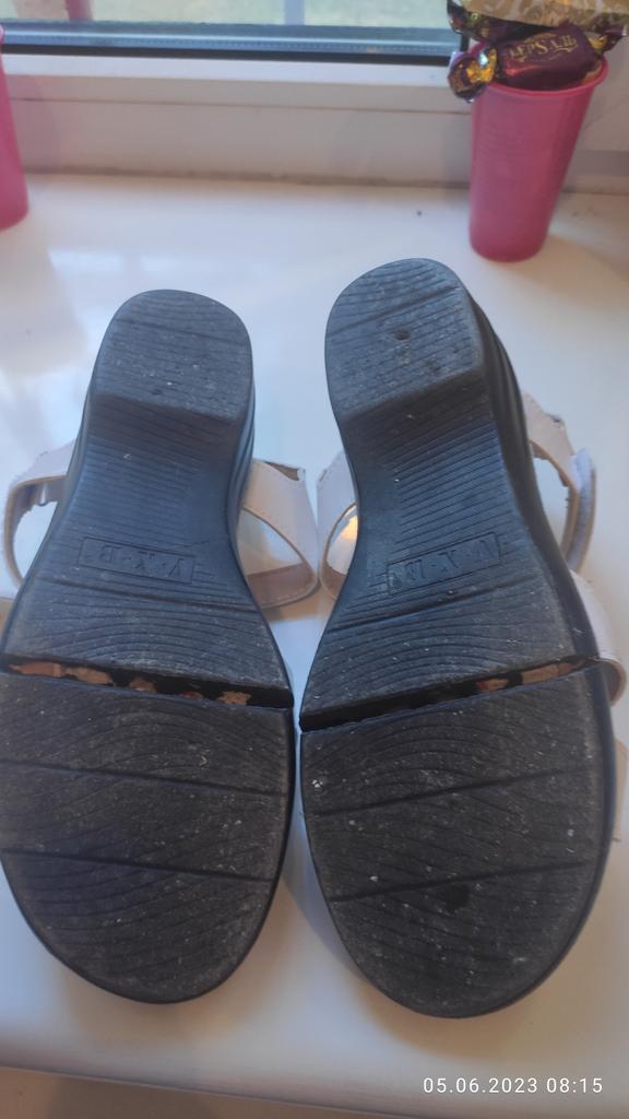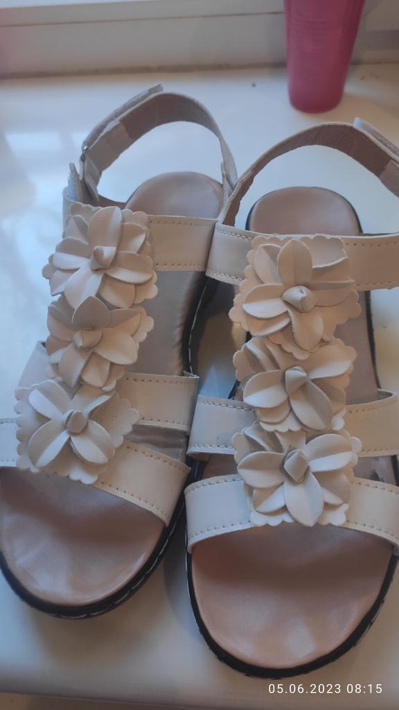 Босоножки, отлично подошёл размер 38 на мой 38,качество смогу оценить месяца через два ,если не развалятся раньше.Купила для работы на сменку , работаю на пятидневке по восемь часов на ногах. Колодка удобная, лёгкие,но к концу дня ноги в них устают.Красиво смотрятся на ноге ,на большой подъем не подойдут,у меня стандартная нога без подъёма и косточек,поэтому вписались,как влитые.На выход не рекомендую ,смотрятся дёшево на мой взгляд.Особенно простит ,если брать цветные .Я работаю в медицине ,поэтому белые под белое смотрятся сносно,но это субъективно моё мнение.Может потому ,что покупаю для работы чисто кожу,а это сразу видно ,что заменитель.Спасибо продавцу и доставке ,шли полтора месяца в Калининград...Дополняю свой отзыв:к покупке не рекомендую.Хватило босоножек ровно на пять- семь раз обуть,на фото видно,как разломилась подошва ,ремонту не подлежит,т.к.нет основы,а точнее стелька приклеена сразу на пустотелую подошву,носила только в помещении ,деньги на ветер ,НЕ РЕКОМЕНДУЮ к покупке 👎👎👎😟