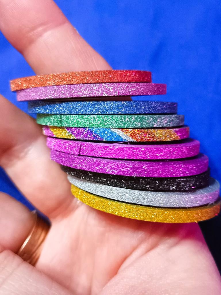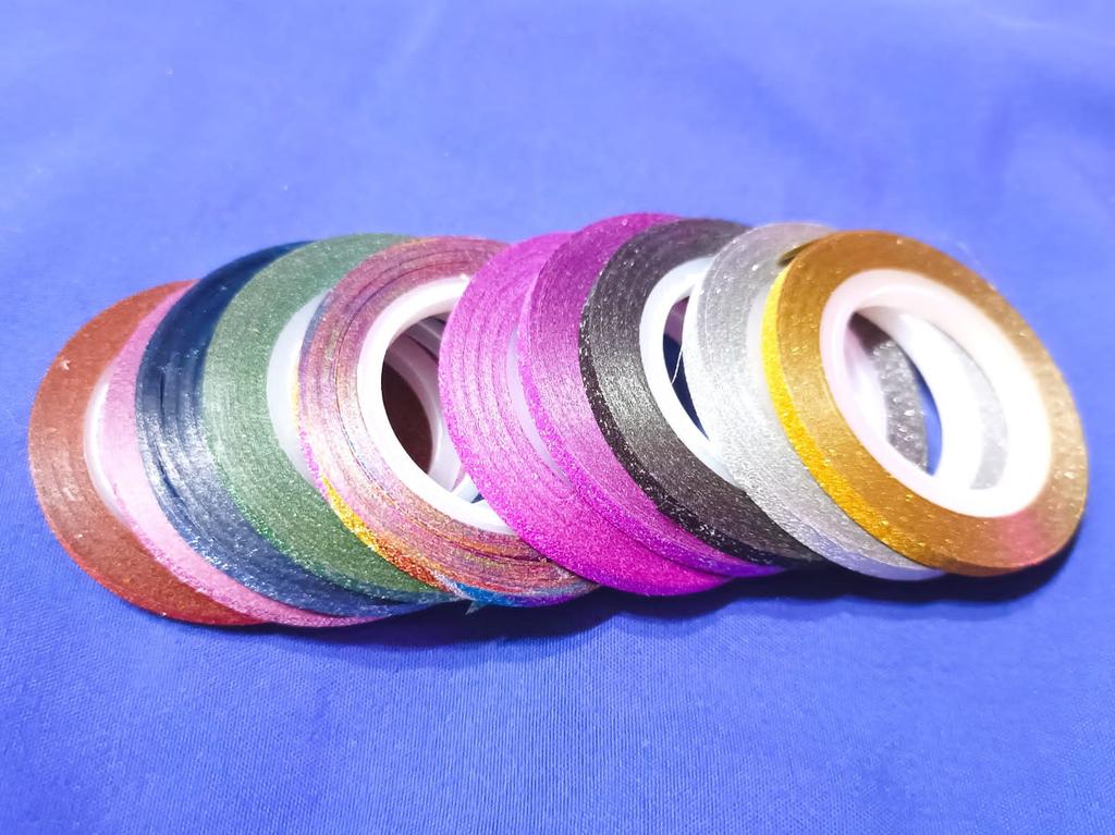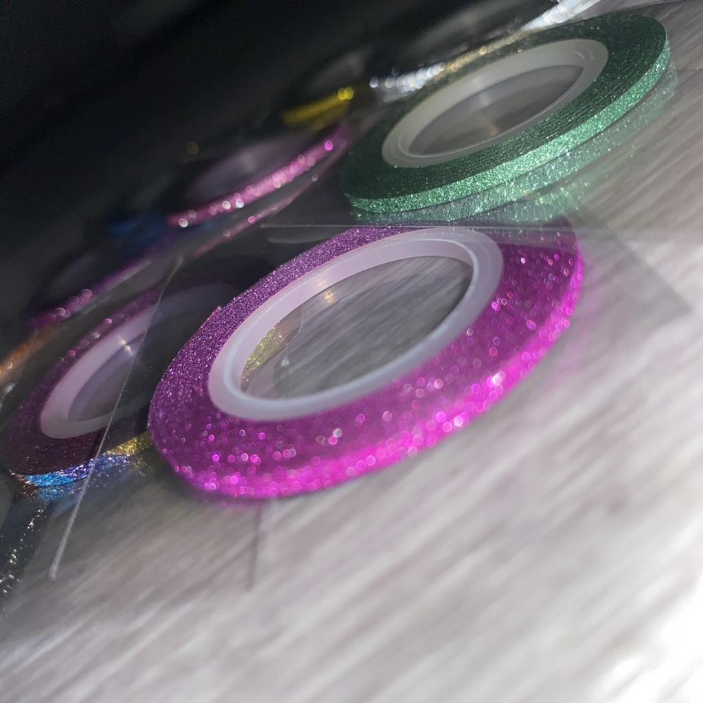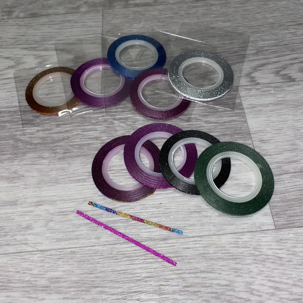 Ленты для маникюра Набор из 10 лент разных цветов Ленты с блестяшкой, к тому же, блестяшка светоотражающая. У меня набор лент с шириной 2мм — это идеальный размер для маникюра 🎉 Так как цветов в наборе много, подойдут под большое количество дизайнов для ногтей. Конечно же, использовать их можно не только для маникюра, а еще для различных поделок своими руками, украшения и дизайна разных вещей 😉 Лента очень тонкая, на ногтях не выделяется практически. Это однозначно плюс 💫 Имеет липкую основу, но ОБЯЗАТЕЛЬНО ЗАКРЕПЛЯТЬ топовым покрытием, или делать укрепление прозрачным гель-лаком поверх наклееных полосочек 😉 Я в восхищении, набор большой, хватит на долго для различных дизайнов ❤️ (я делаю Рекомендую без раздумий ✅