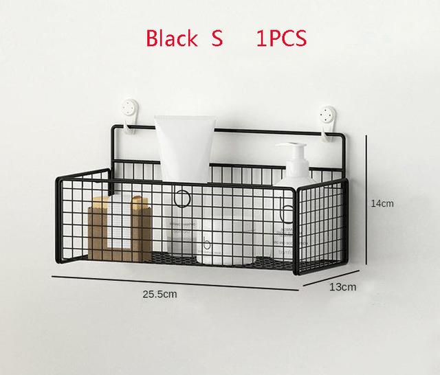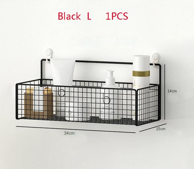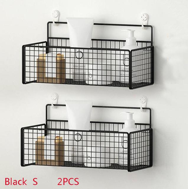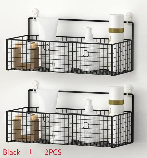 Черная настенная полка для ванной комнаты, полка для шампуня, туалетные принадлежности, кухонная корзина для хранения приправ без пунша