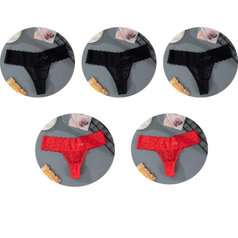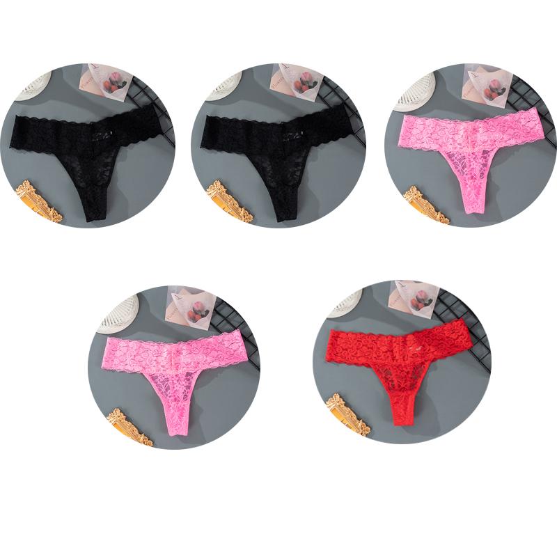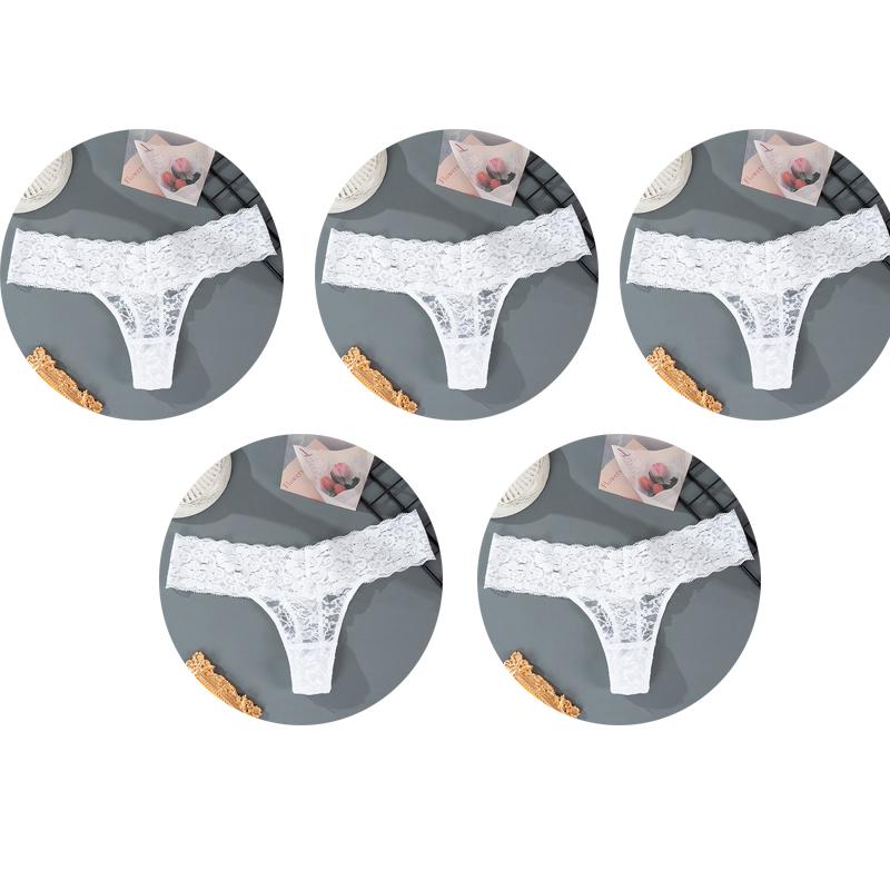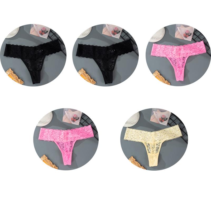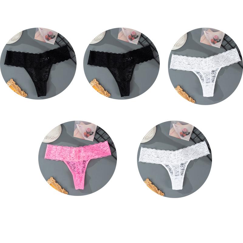 5 шт., M-2XL, большие размеры, трусики-стринги для женщин, кружевное нижнее белье с цветочным принтом, прозрачные женские трусы, женское нижнее белье
