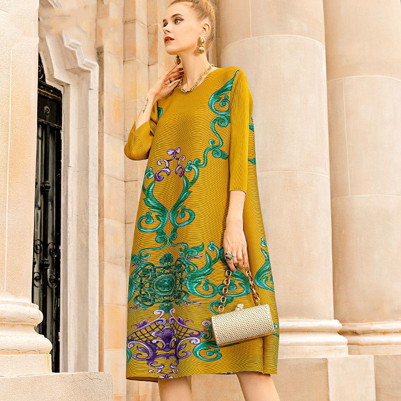 Женское платье, модное плиссированное платье с принтом, весна-осень 2022, новое платье для беременных с длинным рукавом и круглым вырезом, одежда, топы