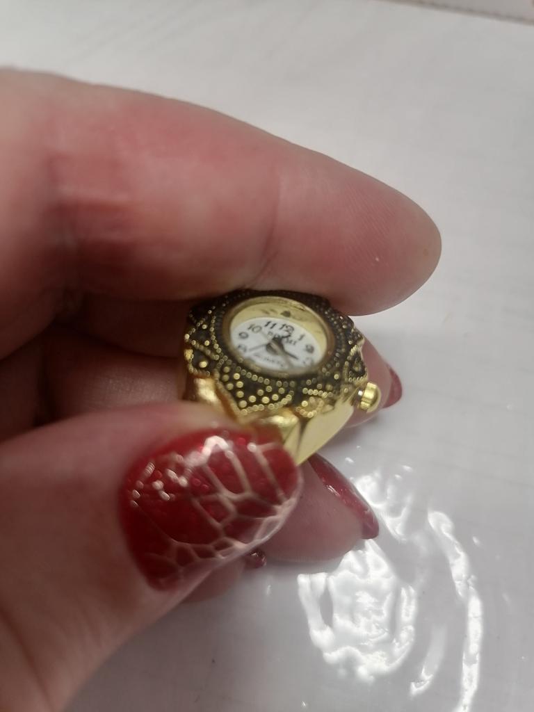 Симпатичные часики- кольцо.Вынула стопор,они сразу затикалиГодя ся на любой палец,я надела на указательный палец левой руки.Еще чуть бы покрупнее цифры на циферблате,хотя читаются плохо только при слабом освещении.Спасибо продавцу за отличную упаковку и Джуму спасибо.