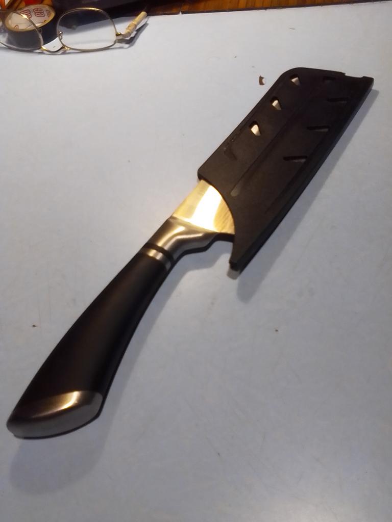 Нож великолепный! Большой!Красивый!Сделан добротно! В меру тяжёлый! Эргономичный,удобно лежит в руке! Ну и конечно,очень острый! Режет всё,но мне нужен для овощей,и их он режет безупречно,от моркови,капусты,огурцов,до спелых томатов...Мягкий хлеб не давит,а с легкостью режет тоненькими ломтиками! Я просто в восторге! Надеюсь,что прослужит долго! Благодарю,магазин и Joom за такой замечательный товар! Кому нужен хороший нож,могу смело рекомендовать! Всем Мира и Добра!
