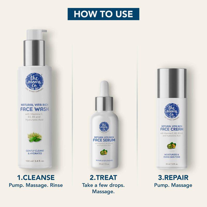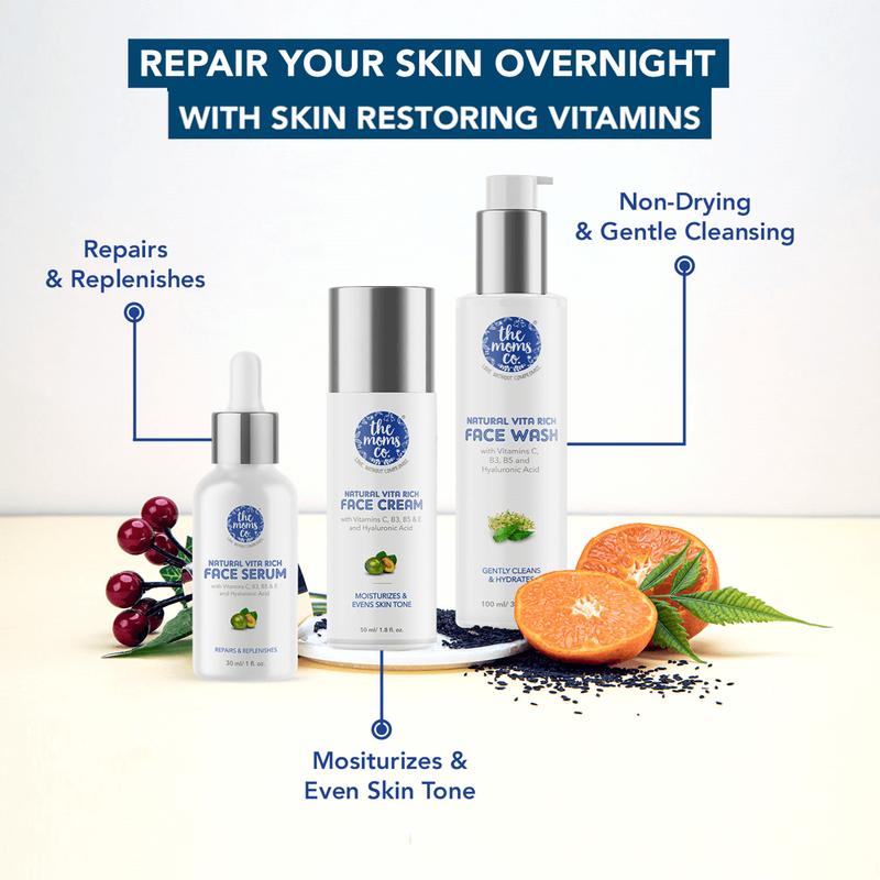 Наш набор Natural Vita Rich Night Repair, обогащенный витаминами для восстановления кожи, обеспечивает полноценный уход за вашим ночным режимом.. Средство для умывания Natural Vita Rich обеспечивает мягкое очищение, сыворотка для лица Natural Vita Rich восстанавливает и восстанавливает кожу, а крем для лица Natural Vita Rich увлажняет и выравнивает тон кожи.. Добавьте их в свой ежедневный уход за кожей, чтобы она была здоровой и ухоженной.