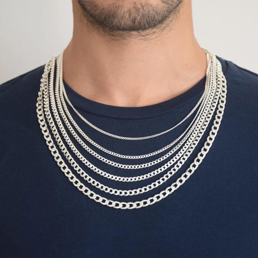 Цепочка ожерелья из стерлингового серебра 925 пробы, серебряное ожерелье с кубинской цепочкой, мужские ожерелья с подвесками для женщин, серебряная цепочка, подарок для нее