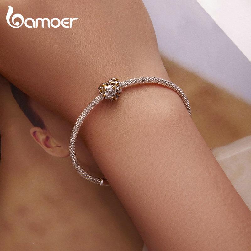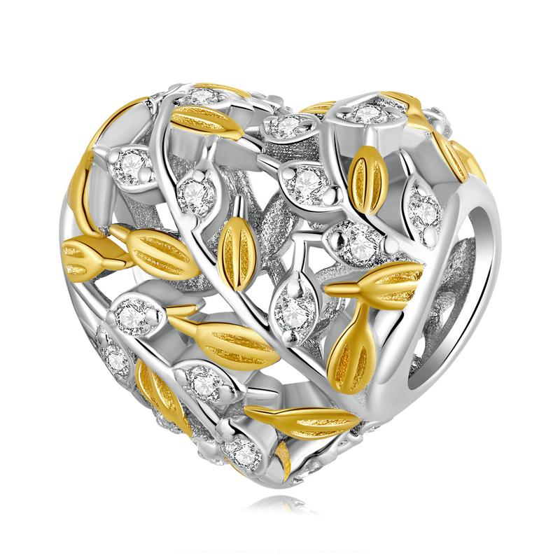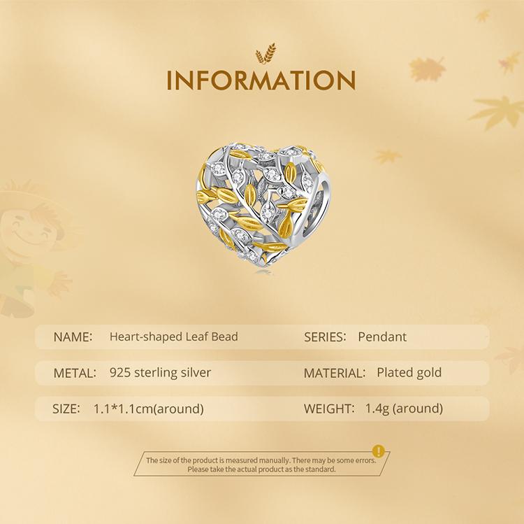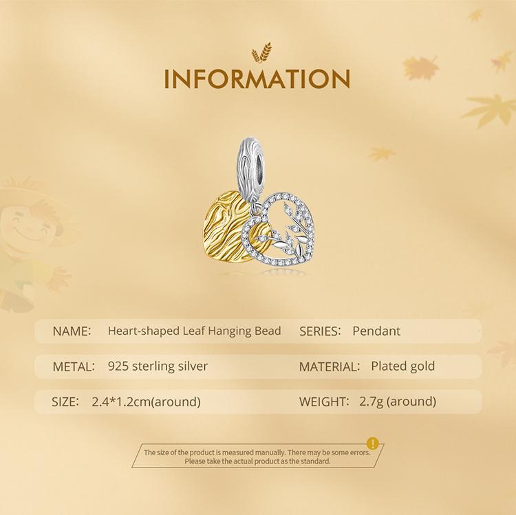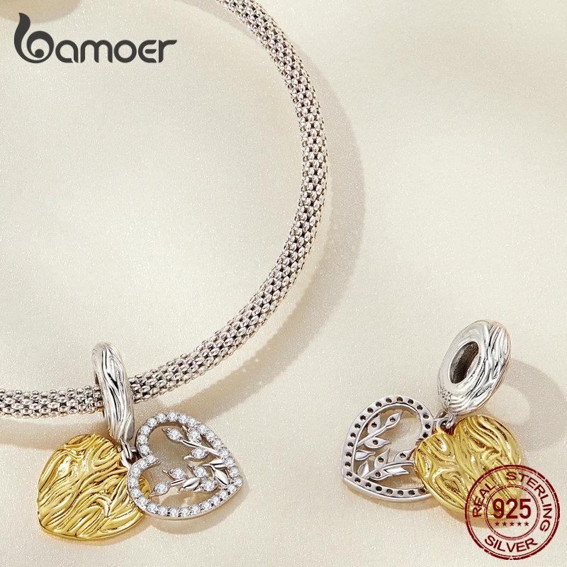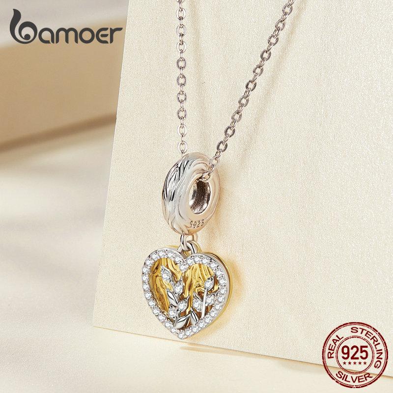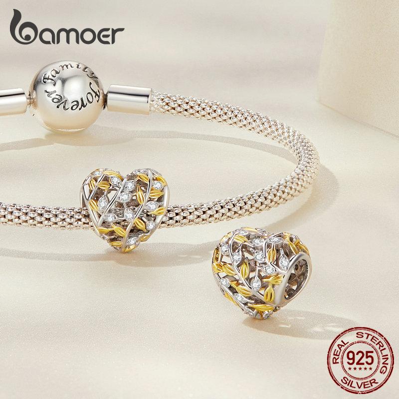BAMOER стерлингового серебра 925 пробы кулон в форме листа в форме сердца подходит для женщин браслет «сделай сам» и браслет с покрытием золотое сердце подвески изящные ювелирные изделия