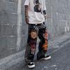 Черные винтажные мужские мешковатые джинсы с принтом граффити, прямые брюки для бега в стиле хип-хоп, хлопковые женские джинсовые брюки