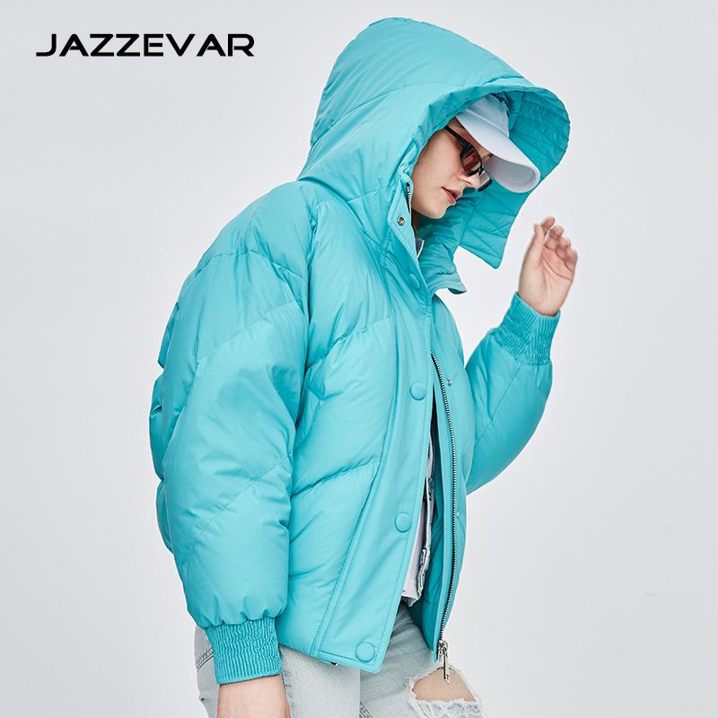 JAZZEVAR Женская зимняя утолщенная пуховая куртка с капюшоном, повседневное короткое пальто