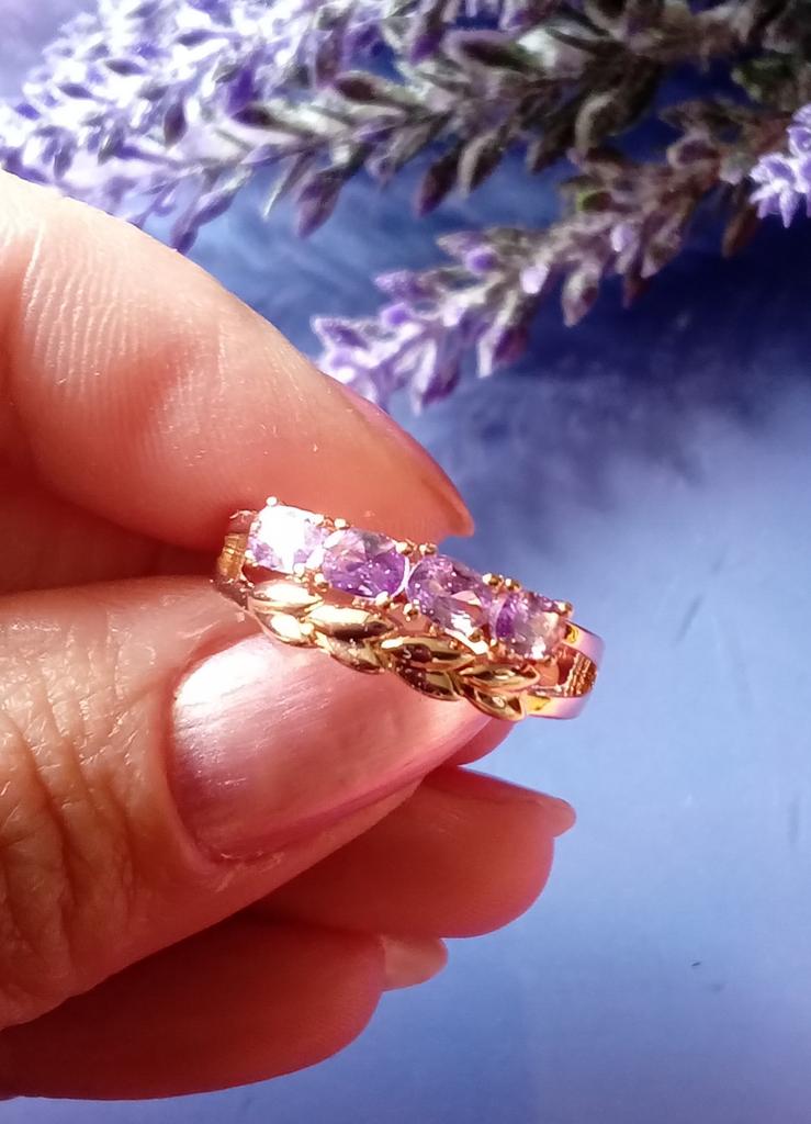 Изящное кольцо с фиолетовыми камушками от проверенного магазина Kinel !🔥💯 Материал:медь+искусственный циркон+покрытие из розового золота ☝️ Размер 8, соответствует полностью, подошло идеально 👍💯 Качество отличное 👍💯: кольцо выглядит как золотое изделие 👌, имеет пробу 585, камни светятся, переливаются. Рекомендую 🤗 к покупке.