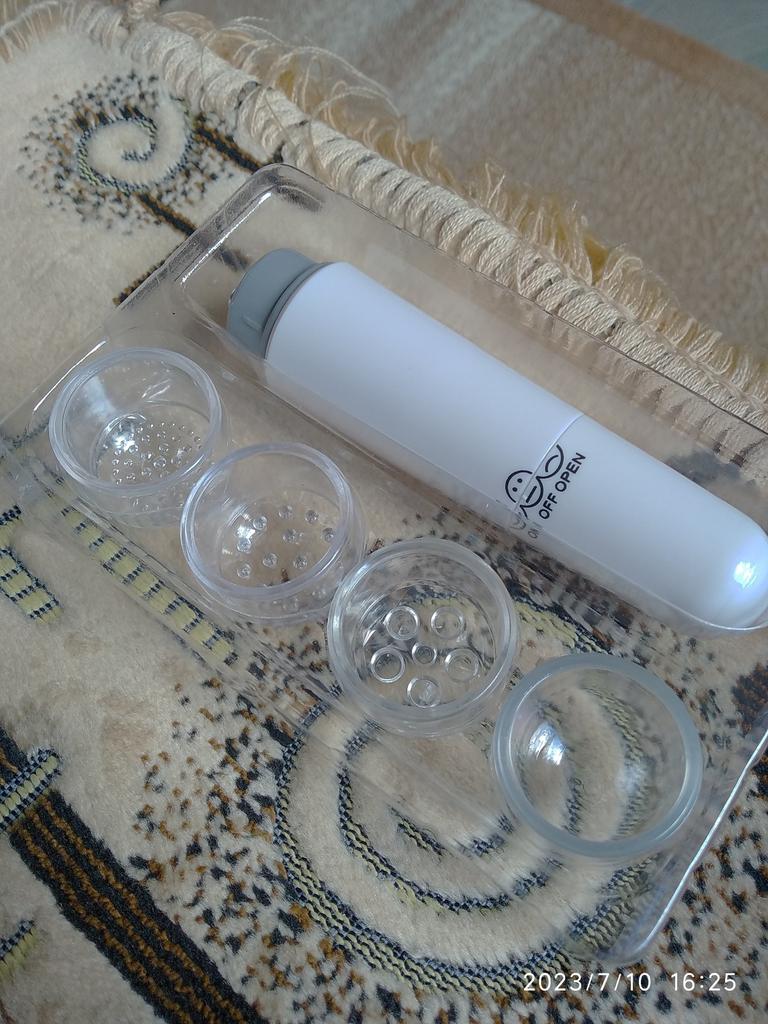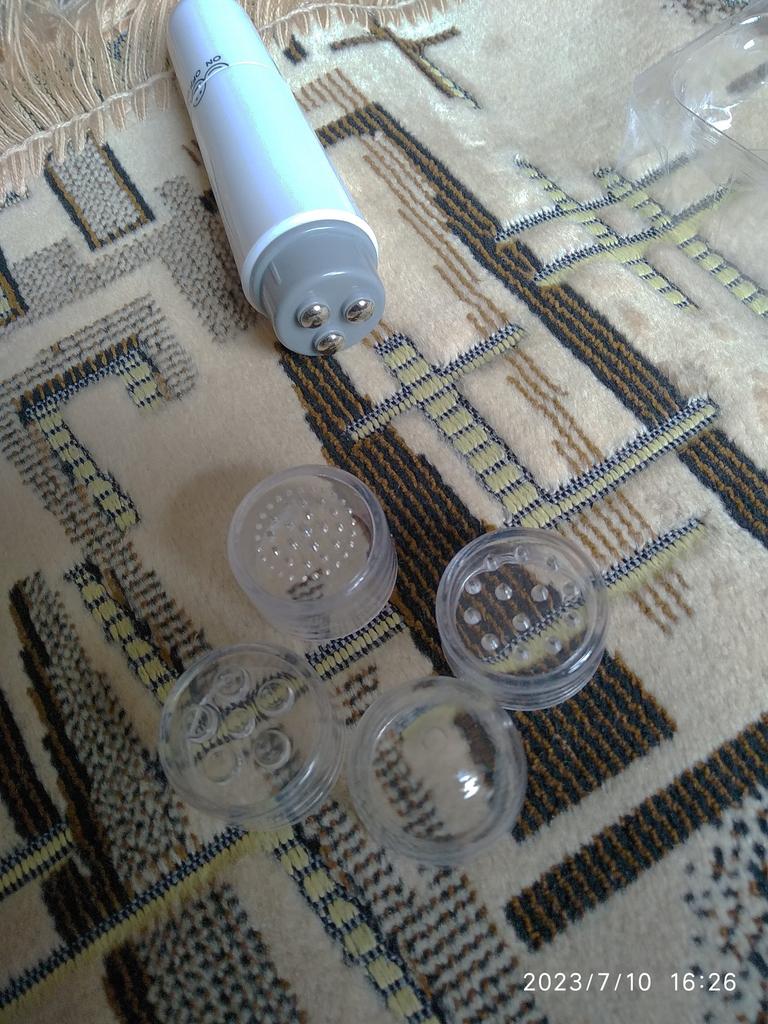 Массажёр для лица.Отлично вибрирует,в комплекте четыре насадки,пальчиковая батарейка легко вставляется,так-же не сложно приборчик включается.