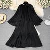 RUGOD Летнее легкое и знакомое стильное платье с круглым вырезом, рукавами в виде листьев лотоса, талией и тонким разрезом, платье трапециевидной формы, большое свободное платье — купить товар онлайн с бесплатной доставкой до всему миру!