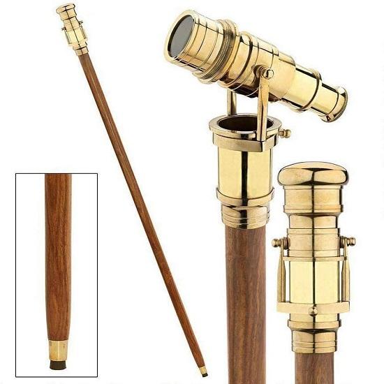 Телескопическая ручка Латунная ручка имеет искусную конструкцию, напоминающую старинный морской телескоп, что придает трости уникальный и привлекательный вид.