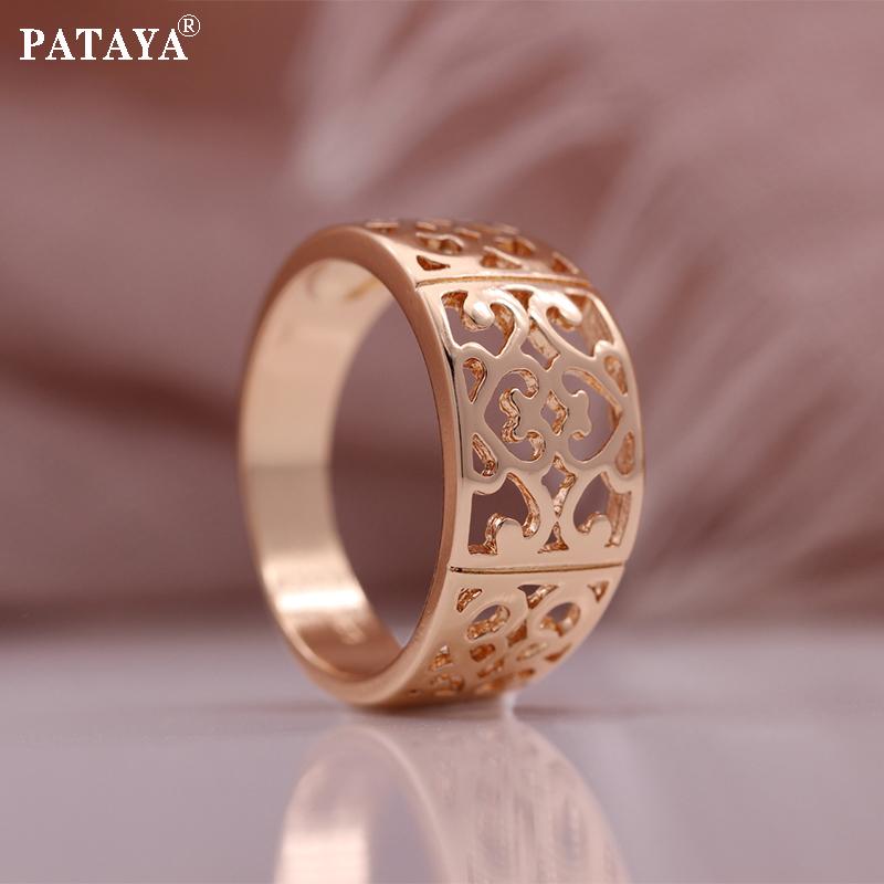 PATAYA Глянцевое кольцо цвета розового золота с полыми итальянскими классическими кольцами с темным цветком — купить товар онлайн с бесплатной доставкой до всему миру!