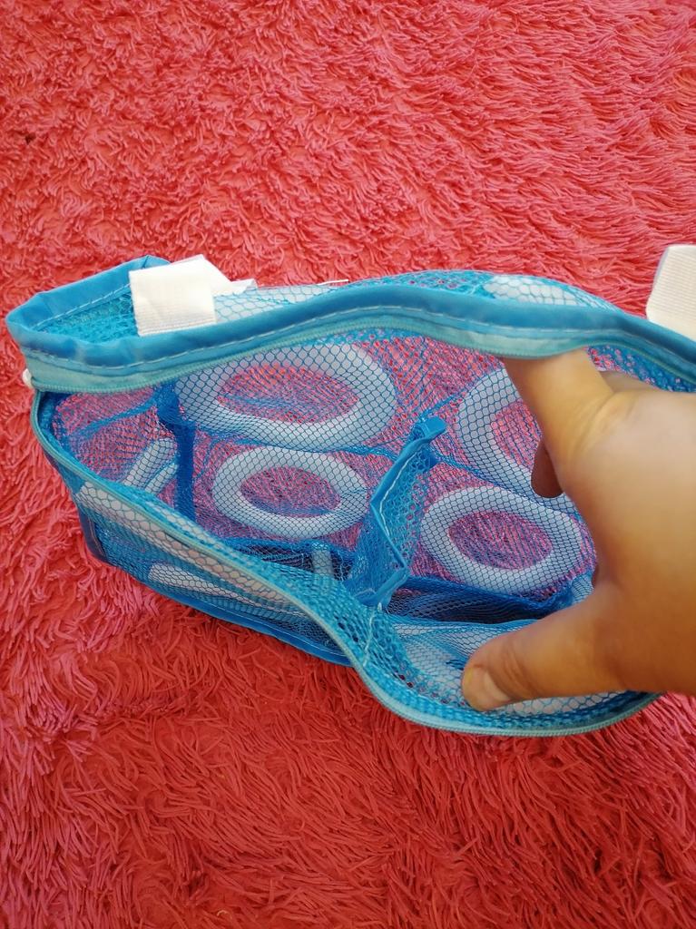 Отличная сумка для стирки и сушки обуви. Есть разделение, то есть внутри два отсека, что очень удобно и есть типа маленькие ручки, что позволяет закрепить или на вешалку или прищепками. Застёжка- молния