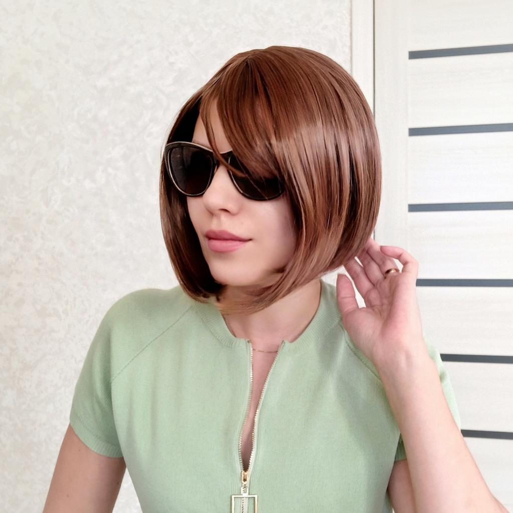 Парик каре с челкой. Промокод на скидку JOYFUL -11%. Парик из синтетических волос, в магазине представлен в 4-х вариантах оттенков волос. Мой парик в натуральном русом оттенке (светло-коричневый). Боб-каре с удлинением - удобный вариант парика, волосы практически не путаются и легко расчесываются. Наличие челки отлично скрывает пробор. Челка длинная, её можно подстричь до нужной длины. Волосы имеют естественный блеск, не матовые, но качество хорошее, не путаются и не выпадают. Длина волос около 30-32 см. Окружность оголовья можно регулировать крючками на резинках. Я довольна покупкой, отличное соотношение цены и качества, идеальный вариант попробовать что-то новое! Доставка заняла чуть больше месяца до отделения Укрпочты, сборную посылку Joom принёс почтальон домой. Упакован парик в зип-пакет и в сеточку для волос.