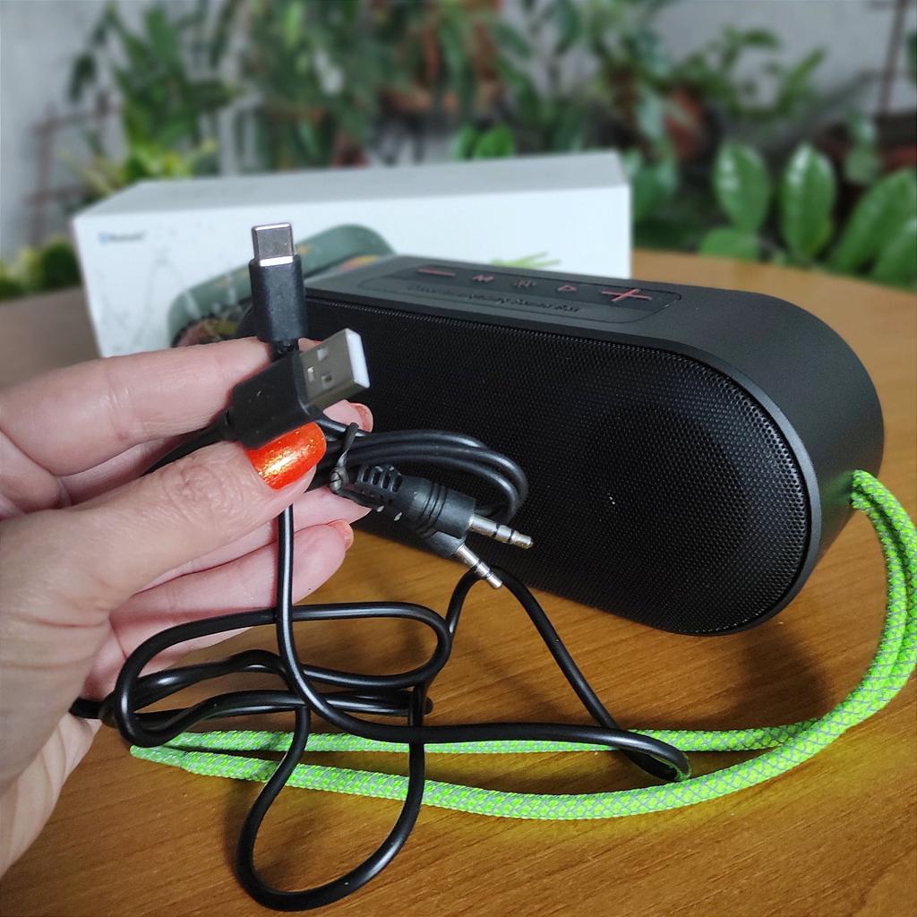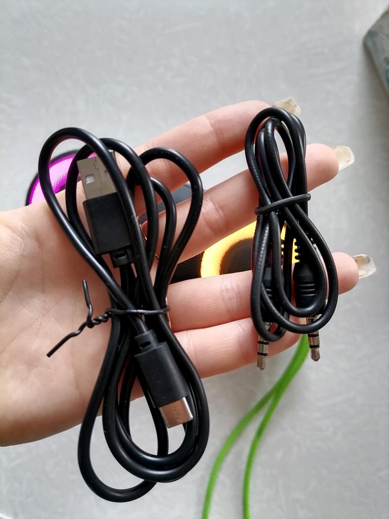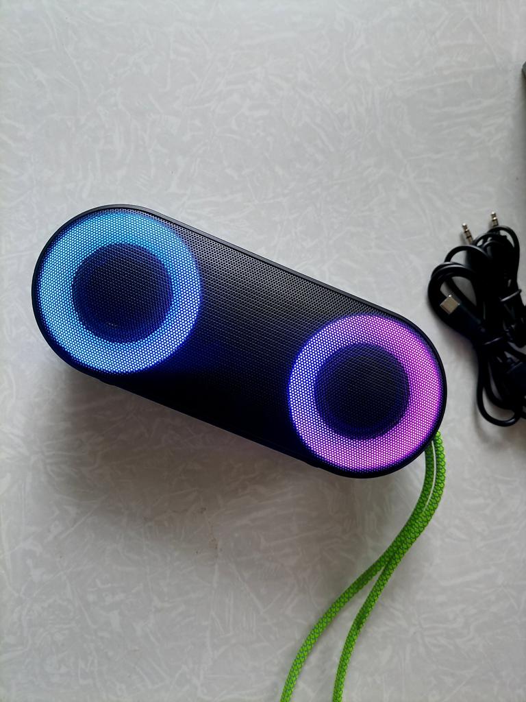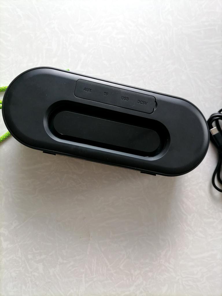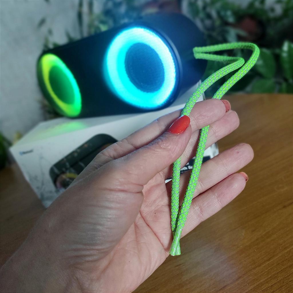 Мощная блютуз-колонка. Хотя по размеру не скажешь. 😁👍 Заказывала для дочки, в итоге её отжал муж. Сказал, что басы в этой звучат гораздо лучше, чем в старенькой. Немного не хватает средних, но для портативной небольшой колоночки - качество просто супер! Впрочем, удивился он ещё до включения устройства. При внешних размерах примерно 8 см (высота) *20 (ширина) *7 (глубина), вес колонки - 700 граммов. То есть аккумулятор здесь достаточно серьёзный. По описанию, ёмкость 3000 mAh. Полностью заряжается от сети за 3 часа, разряжается - за 5-8 (в зависимости от громкости звучания). Муж работает с ним в гараже вечерами уже несколько дней без подзарядки. Цвет динамика - чёрный. Дизайн лаконичный, ничего вычурного. Сбоку - шнур со свободными концами. Можно завязать и подвесить, к примеру, на ветку в походе. Кстати, шнур светоотражающие, так что потерять динамик в темноте трудно, достаточно посветить фонариком. В комплекте два кабеля, для зарядки (Type-C) и aux. Два динамика с шестью режимами подсветки, очень красивыми (можно отключить). Музыку можно слушать, подключив колонку к воспроизводящему устройству через блютуз или кабель. Есть слоты под флешку и карту памяти. Радио тоже есть. Кнопки управления расположены сверху, под гибкой силиконовой пластиной. Панель с портами - сзади, закрывается силиконовой крышкой. Упакована колонка в красивую картонную коробочку, которая сверху даже была затянута плёнкой. Очень понравилась, рекомендовать буду очень охотно!