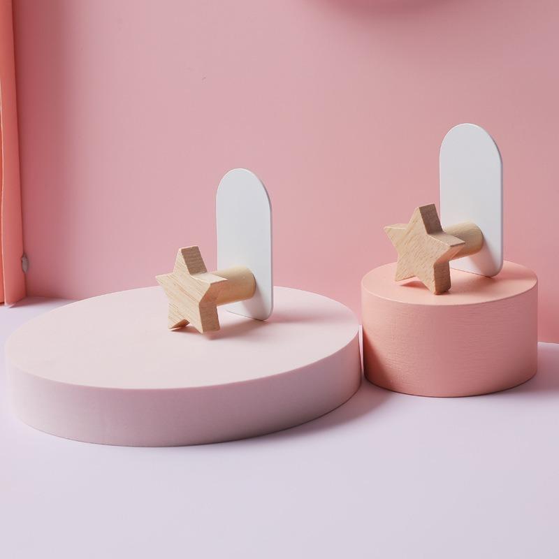 Деревянный крючок со звездой и сердечком, прочный липкий крючок без следов, крючок для ключей, крючок для ключей, твердая древесина, детский крючок для пальто, домашний декор