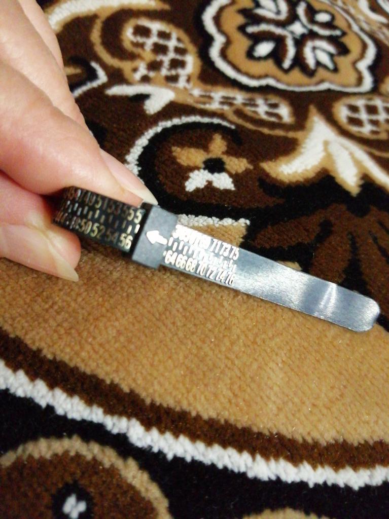 На фото измерительная лента с размерами, которыми пользуемся в России (размеры США- например, 15,16,17 и т. д. ) . Пришла лента с размерами европейскими (например, 41,42,43 и т. д.) . При заказе нужно обращать на это внимание. Теперь придется искать таблицу для перевода размера в привычные для нас цыфры. Звезду сняла именно за это. А так, измерять очень было бы удобно.