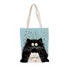 Большая вместительная сумка-тоут с милым кошачьим принтом, сумка для покупок, женская льняная сумка-тоут, пляжная сумка для отдыха и путешествий